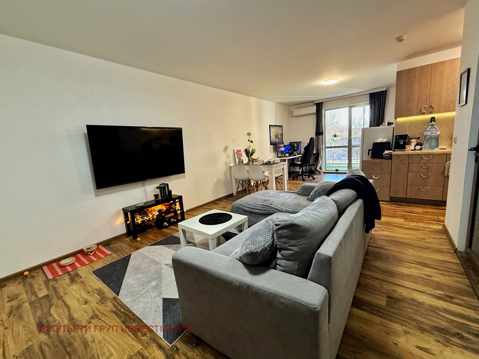Апартаментът е разположен на 4-ти жилищен етаж, разполага със следното функционално разпределение:дневна с кухненски кът, спалня, баня с тоалетна и тераса, имота е със западно изложение, което осигурява много светлина и комфорт. Продава напълно обзаведен, готов за нанасяне или отдаване под наем.