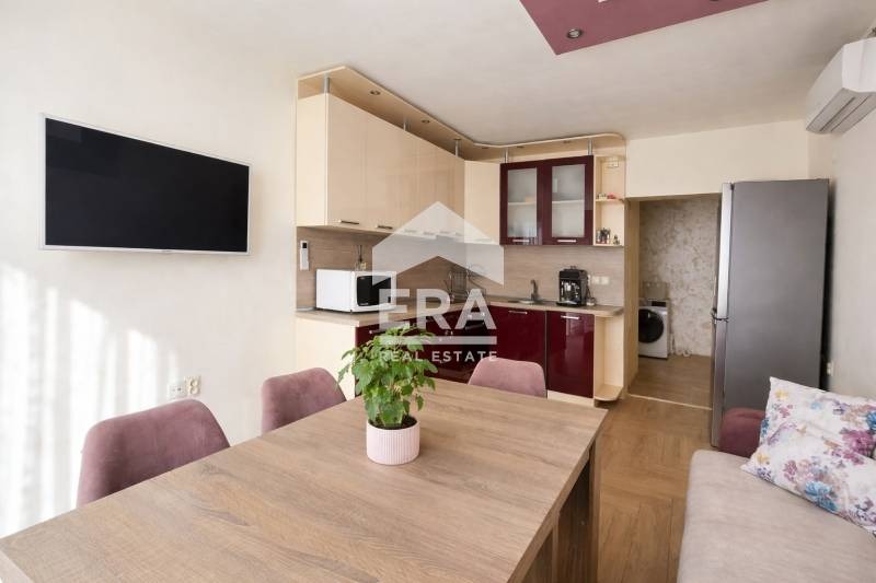 Апартаментът е с чиста застроена площ от 79,08 кв.м. и западно изложение. Разпределението е практично и функционално, като включва дневна с кухненски бокс, две спални, баня с тоалетна и две тераси. Жилището се предлага напълно обзаведено, което позволява бързо и лесно нанасяне от новите собственици или отдаване под наем с инвестиционна цел. Отоплението е решено посредством ТЕЦ, като има монтирани и климатици за допълнително удобство.