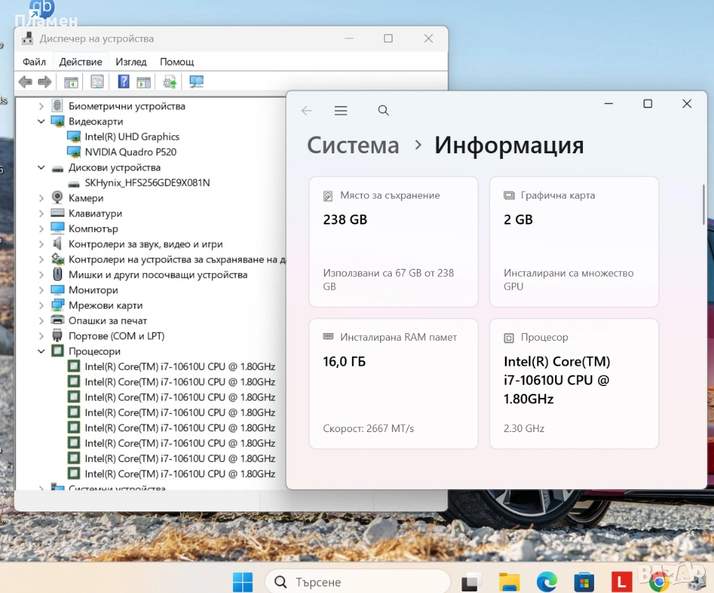 Лаптопа е професионално инсталиран с Windows 11 Pro, почистен от прах, със сменена термо паста и оптимизиран за максимално бързо действие.Също така има всички нужни програми, за да започнете веднага да го използвате: MS Word, Excel, VLC Player, Torrenttraker и др.
