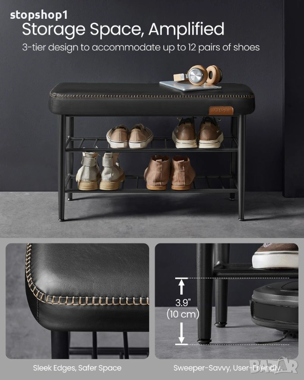 - [Подобрено място за съхранение, подходящо за прахосмукачка] Този интелигентно проектиран долен рафт е на 9,5 см от земята, осигурявайки 3 нива за съхранение на обувки. Освен това е достатъчно висок, за да може вашата роботизирана прахосмукачка да почиства отдолу, което помага да поддържате пространството си подредено и организирано.