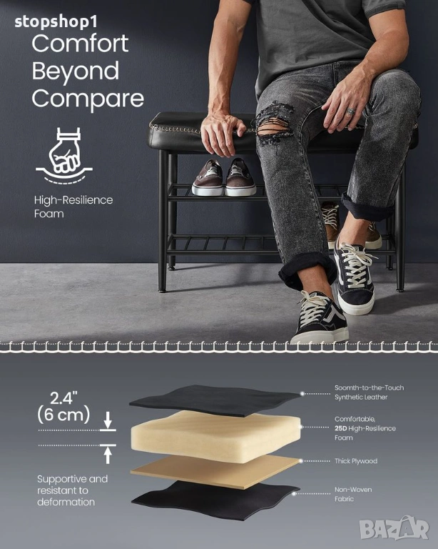 - [Комфорт при всяко сядане] Плъзнете ръката си по гладкия калъф, след което потопете в поддържащата 3,1-инчова, 25D високоеластична пяна, проектирана да устои на деформация. Тази пейка за обувки осигурява удобна седалка, която издържа проверката на времето.