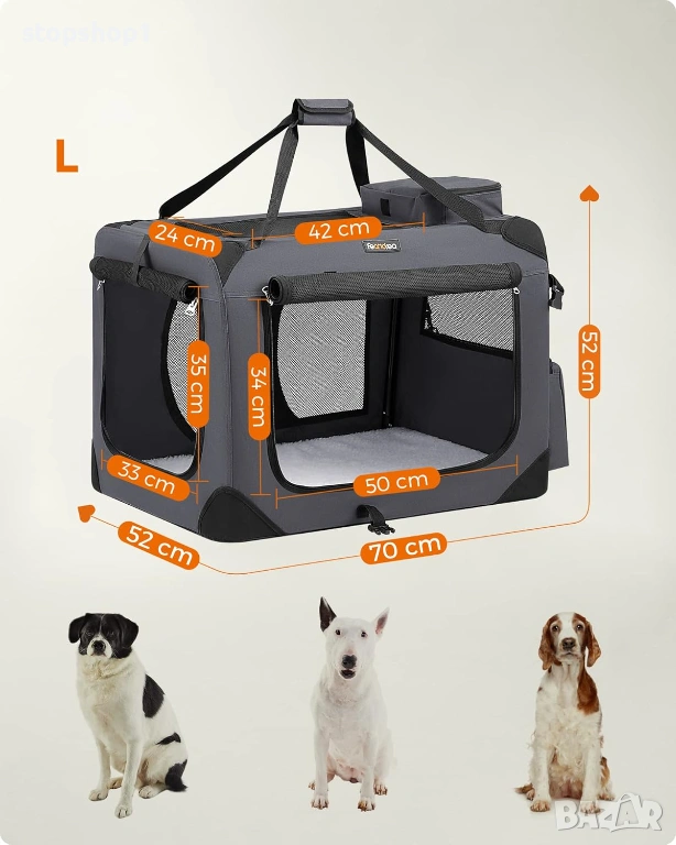 - [Определете правилния размер] Клетката за кучета (70 x 52 x 52 см) е подходяща за домашни любимци с тегло между 11-16 кг. Препоръчителни породи: шетландска овчарка, бийгъл, шиба и т.н. Моля, следвайте инструкциите за правилния метод на измерване.