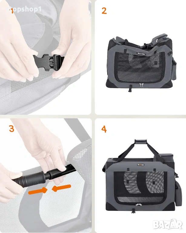 - [Безопасна, удобна, практична] Преносимата чанта за кучета е изработена от стоманена рамка и здрав оксфордски плат и има лесна за поддръжка поларена постелка отвътре - стабилна и удобна. Закуски, колиета и др. се побират в двата странични джоба.