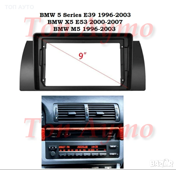 Адаптерна Рамка за 9" инча Мултимедия BMW БМВ Е39 X5 E38 E53 Андроид Android 2 дин 2 din