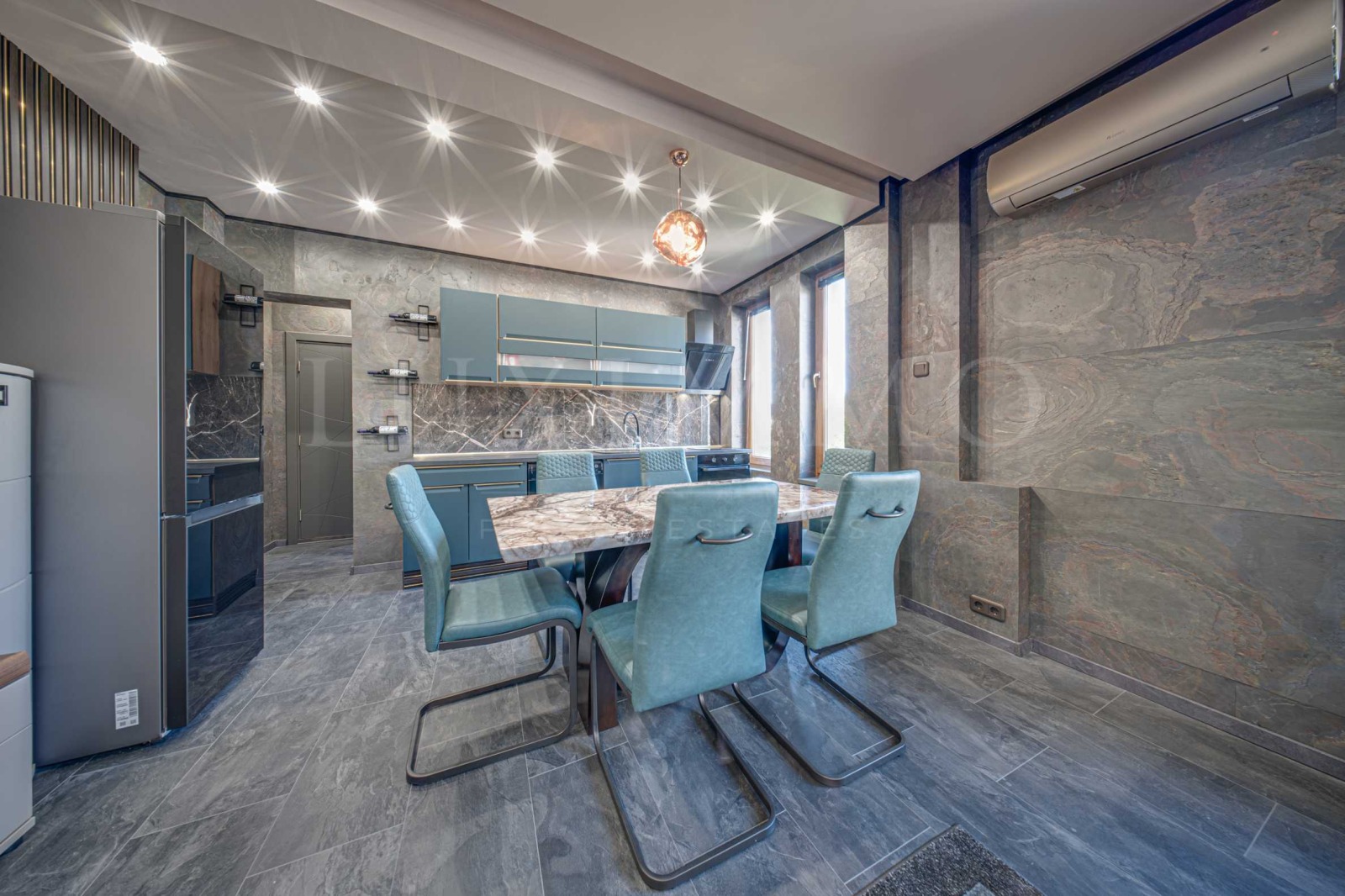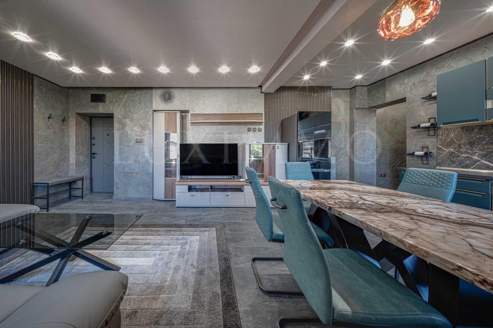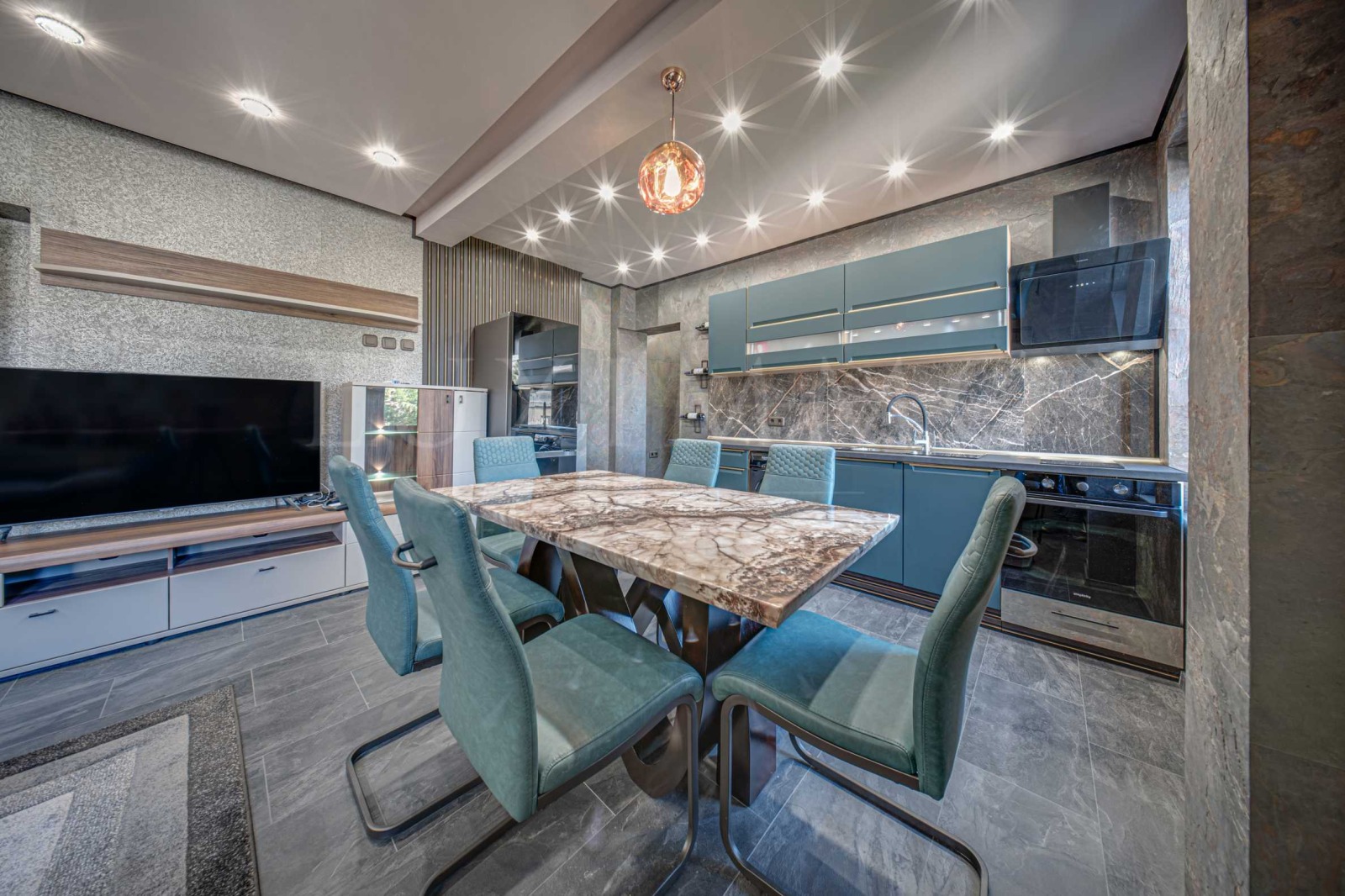 Прекрасен съвременен интериор с внимателно подбрани материали, осветление и детайли.