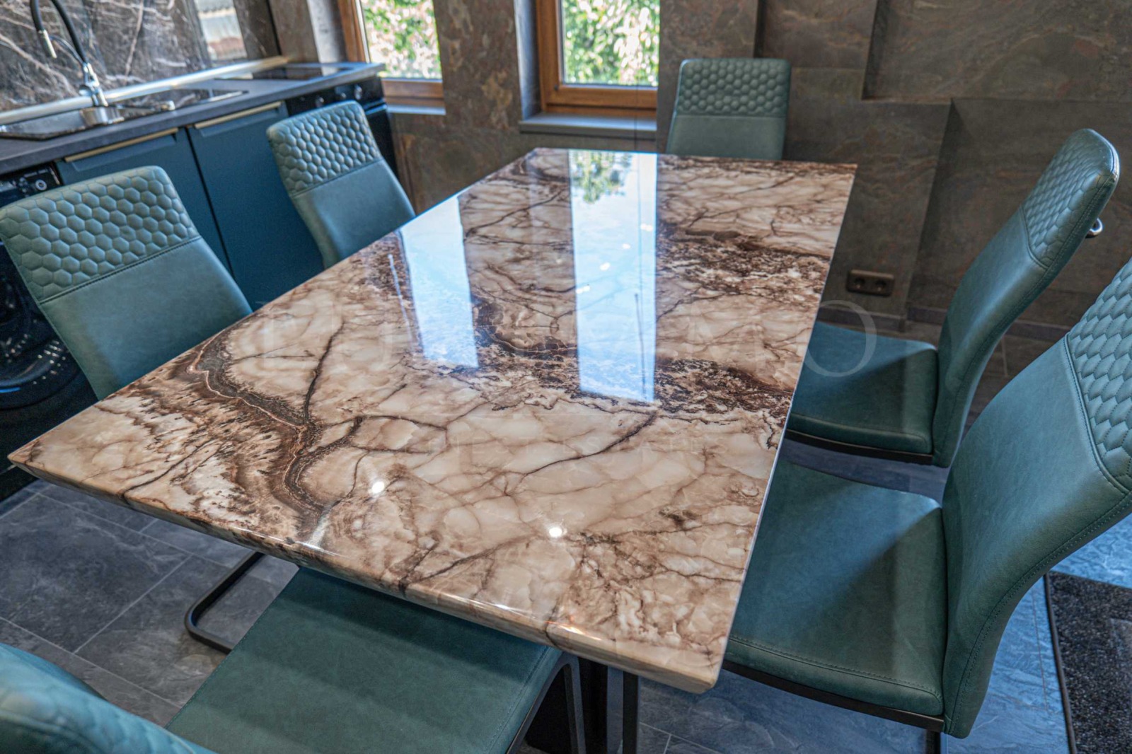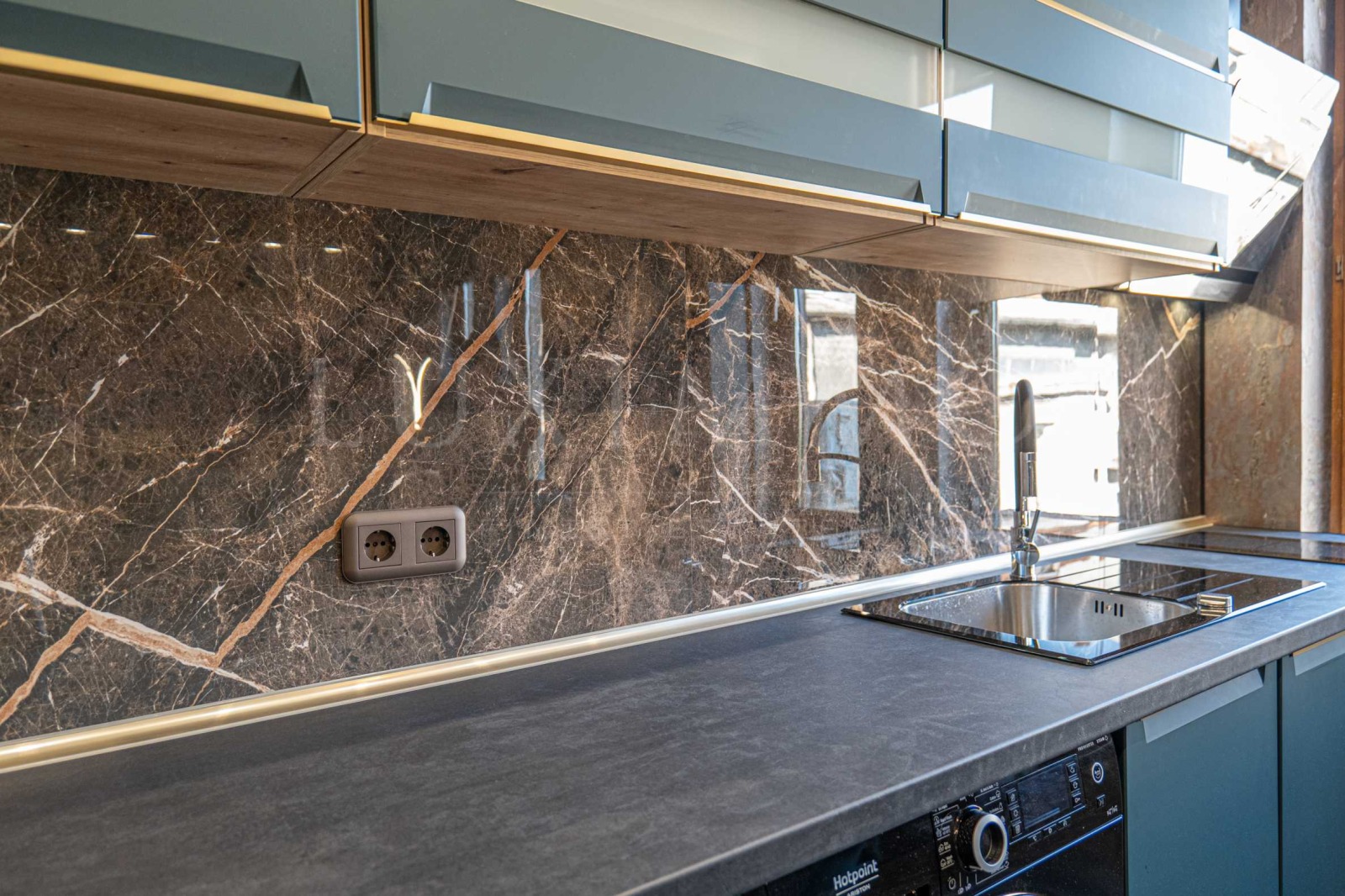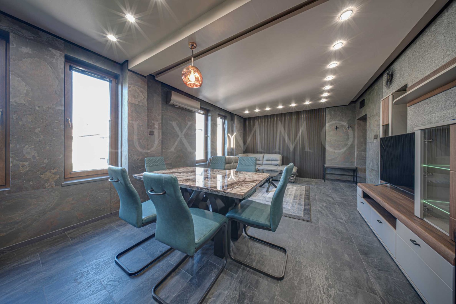 Прекрасен съвременен интериор с внимателно подбрани материали, осветление и детайли.