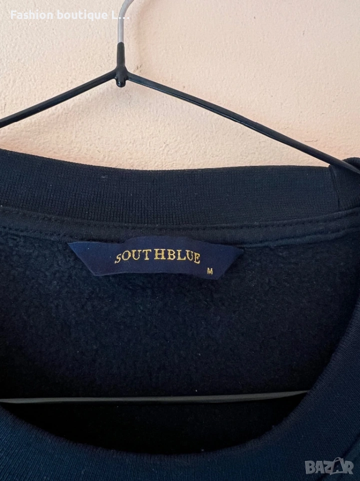 Тъмно синя памучна блуза с дълъг ръкав и релефна щампа отпред М размер 💙 → Обява 53771216