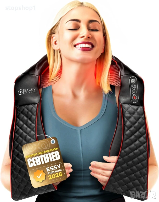 ПРОФЕСИОНАЛНА МАСАЖНА ТЕРАПИЯ В КОМФОРТА НА ВАШИЯ ДОМАШЕН РЕЛАКС: Търсенето на релаксация и облекчаване на болката набира популярност. Отговорът? Страхотен масаж. Но провеждането на такъв може да бъде скъпо и отнемащо време. Ето го ESSY Premium масажор за врата, раменете, гърба и цялото тяло. Все едно да получите професионален масаж, без да напускате дома си и да харчите много пари! Този шиацу масажор за гръб с топлина е базиран на масаж и топлинна терапия, които могат да се извършват върху различни части на тялото.