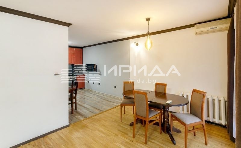 Жилището е разположено в монолитна, тухлена сграда с асансьор. 115кв.м. ЧЖП. Състои се от просторна и светла дневна с трапезарна част и кухненски бокс, две големи, самостоятелни, спални, всяка с дрешник, две бани и два балкона. Имота се предлага с оборудвана вградена кухня. Hастилки - паркет, гранитогрес и ламинат. Към него има мазе и идеални части от дворното място.