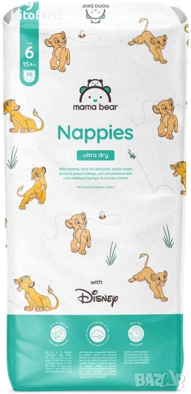 Пелени Mama Bear Disney Ultra Dry пелени, размер 6 (15+ кг), 70 броя, бели