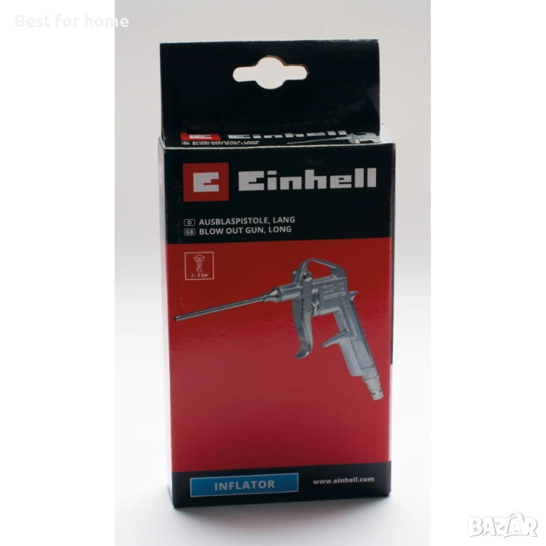 Аксесоари за компресори Einhell. Практичният пистолет за обдухване може да се използва за почистване на работното място и за отстраняване на прах от повърхности, които ще се боядисват.