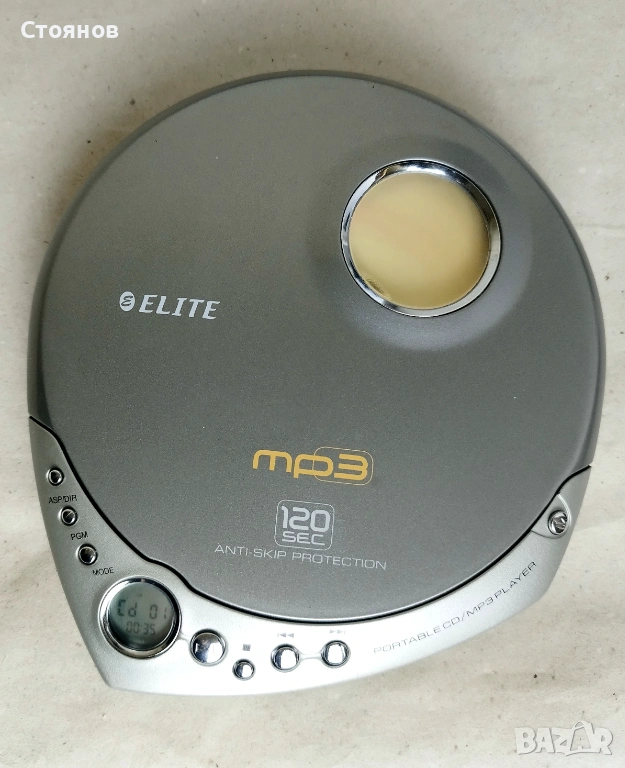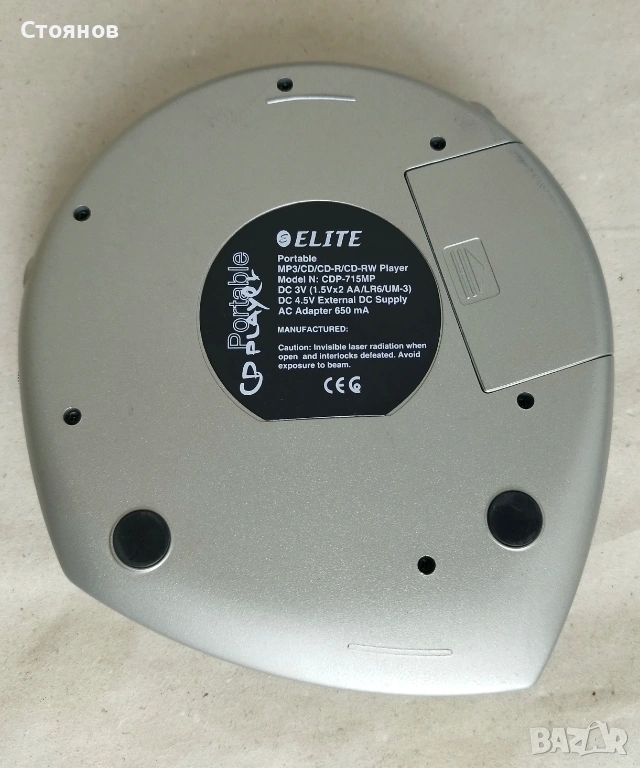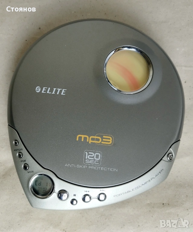Портативен преносим CD / MP3 плеар ELITE CDP-715MP, работи безупречно, чете и записани дискове - тестван. Захранва се 2 х АА батерии (не са включени). Изпращам по Спиди или Еконт, добре опакован, с включена опция за преглед и тест. За връзка, моля пишете в съобщения. Благодаря!
