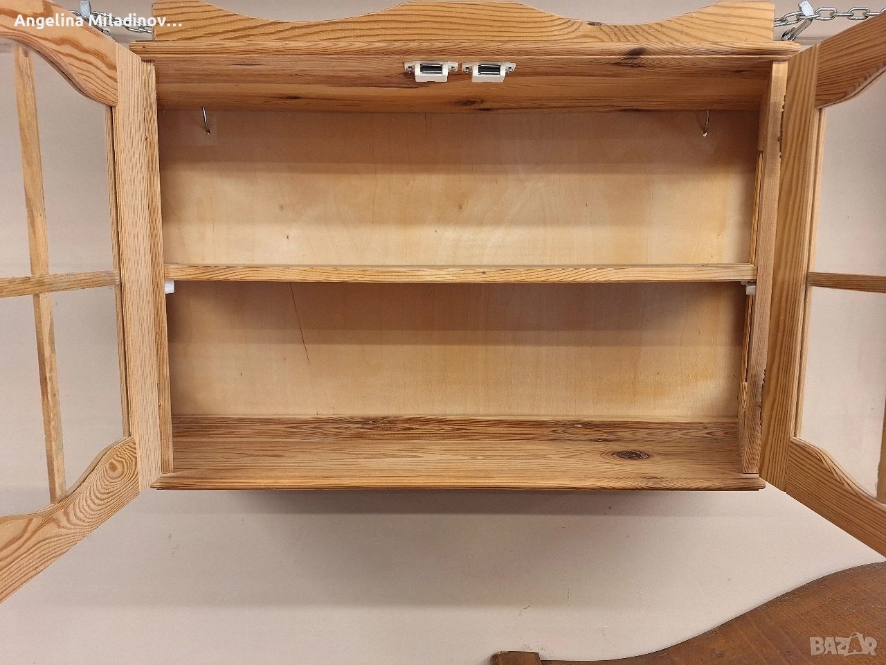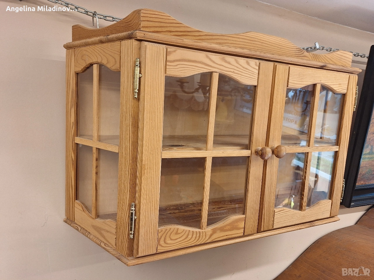 Винтидж витринка за стена. Интересна и различна витринка масивна дървесина, внос от Дания. Кокетна с удобни размери с вратичка и полици. . Елегантни извивки правят витринката впечатляваща. Идеално бижу за вашия коридор, офис или кухня. Разгледайте и другите ми обяви. Последвайте ни и във фейсбук Мебели шик. Размери: Дължина - 79 см. Ширина - 25 см. Височина - 46 см. Цена - 75 €. 146,69 лв. vintagemebel.olx.bg