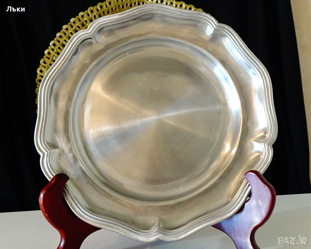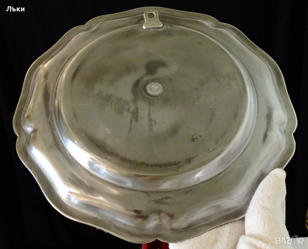 Стара немска калаена чиния за стена,калаено пано,ръчно