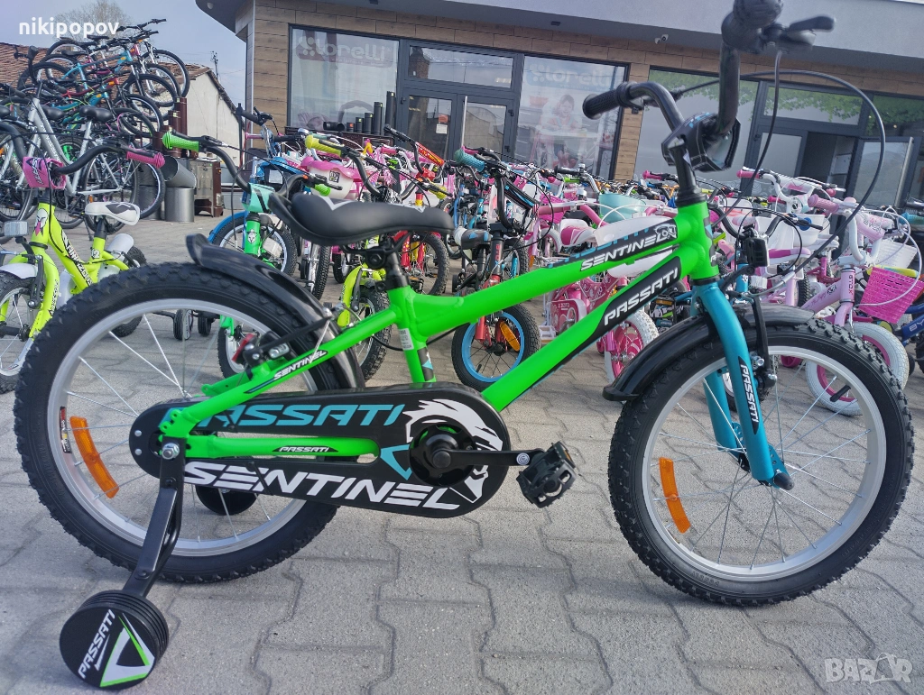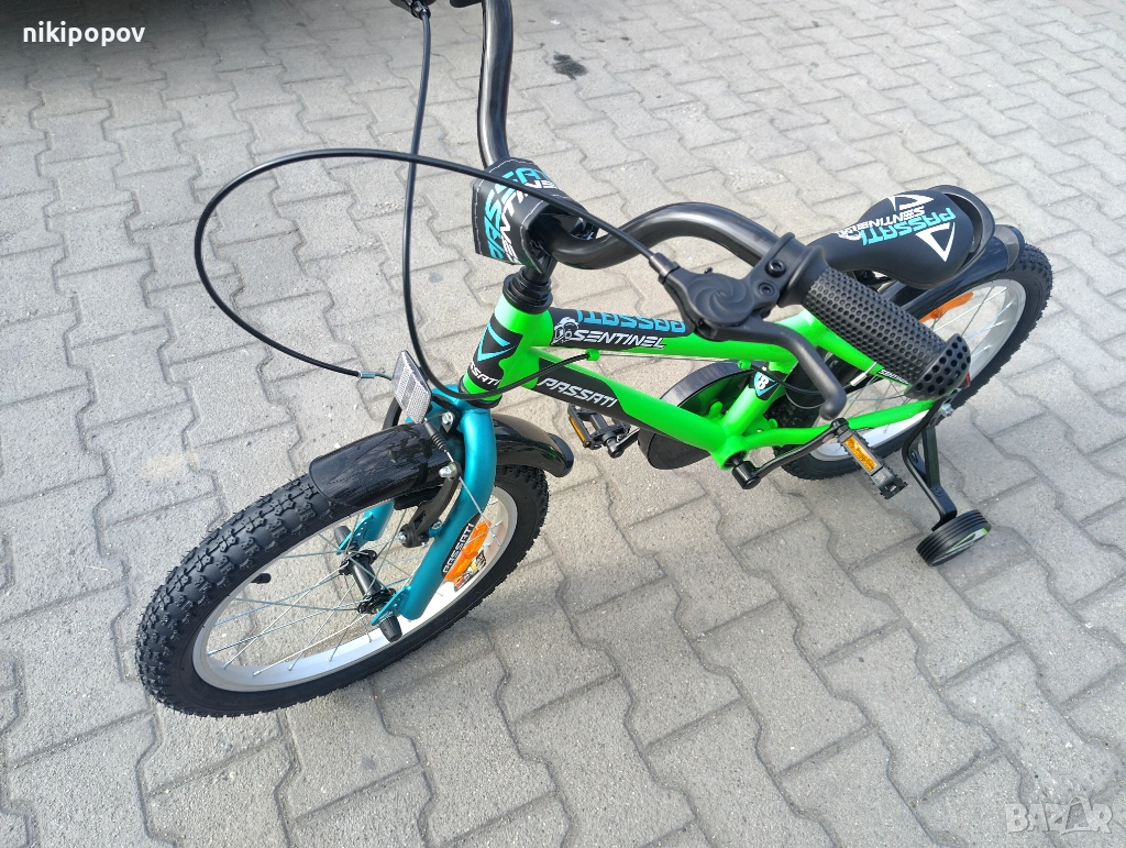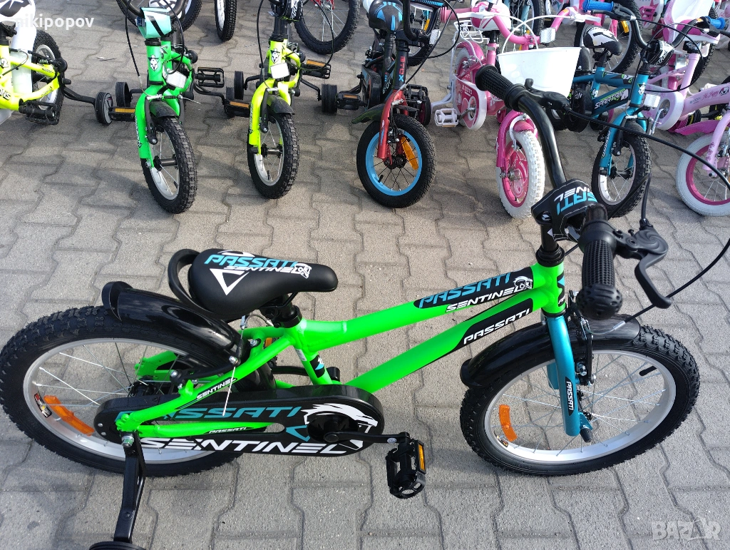 *Детският велосипед на Passati Bikes е един прекрасен избор за децата между 5 и 7-годишна възраст и височина от 110 до 130см. Возилото е снабдено с помощни колела, посредством които детето ще усъвършенства умението си да балансира на две гуми неусетно. Рамката е алуминиева. Разполага с предна и задна V-brake спирачка, пластмасови калници и предпазител на веригата.