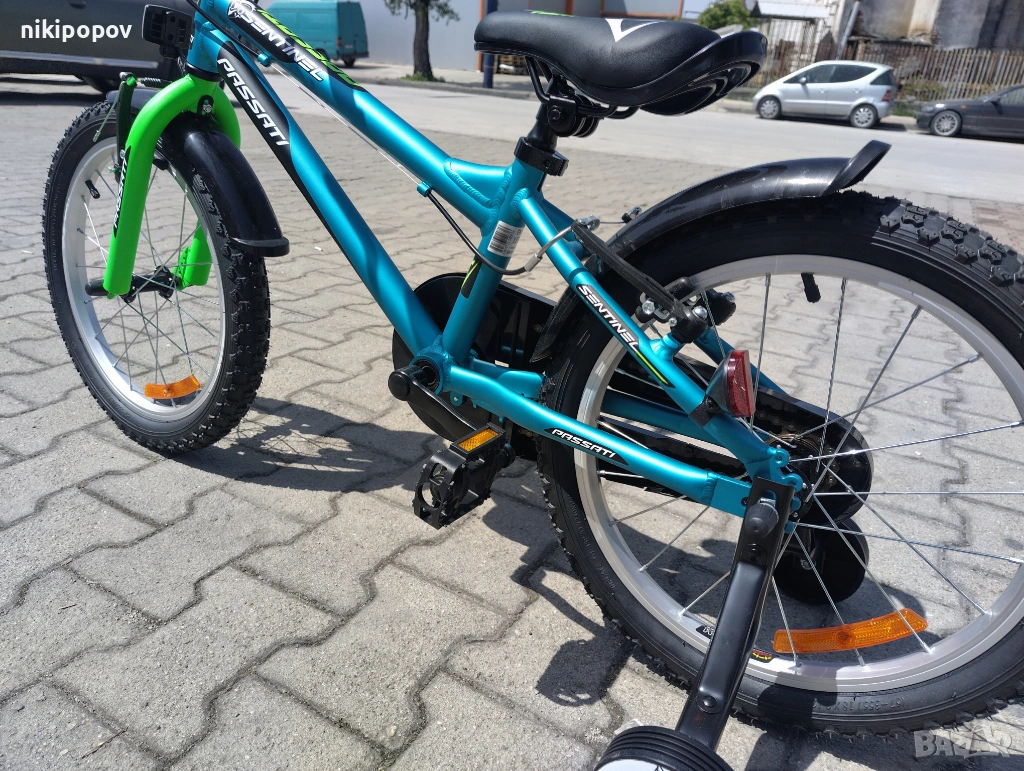 *Детският велосипед на Passati Bikes е един прекрасен избор за децата между 5 и 7-годишна възраст и височина от 110 до 130см. Возилото е снабдено с помощни колела, посредством които детето ще усъвършенства умението си да балансира на две гуми неусетно. Рамката е алуминиева. Разполага с предна и задна V-brake спирачка, пластмасови калници и предпазител на веригата.