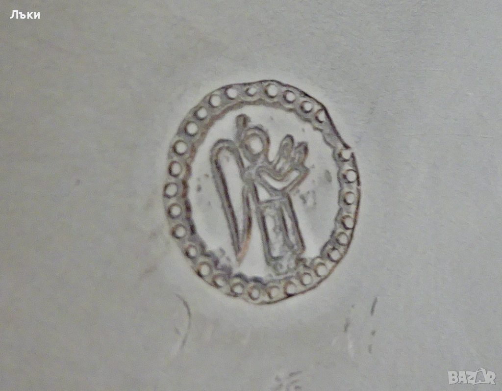 отлята от масивен 95% калай и 5% сребро,маркирана с печат на производителя.Предназначена