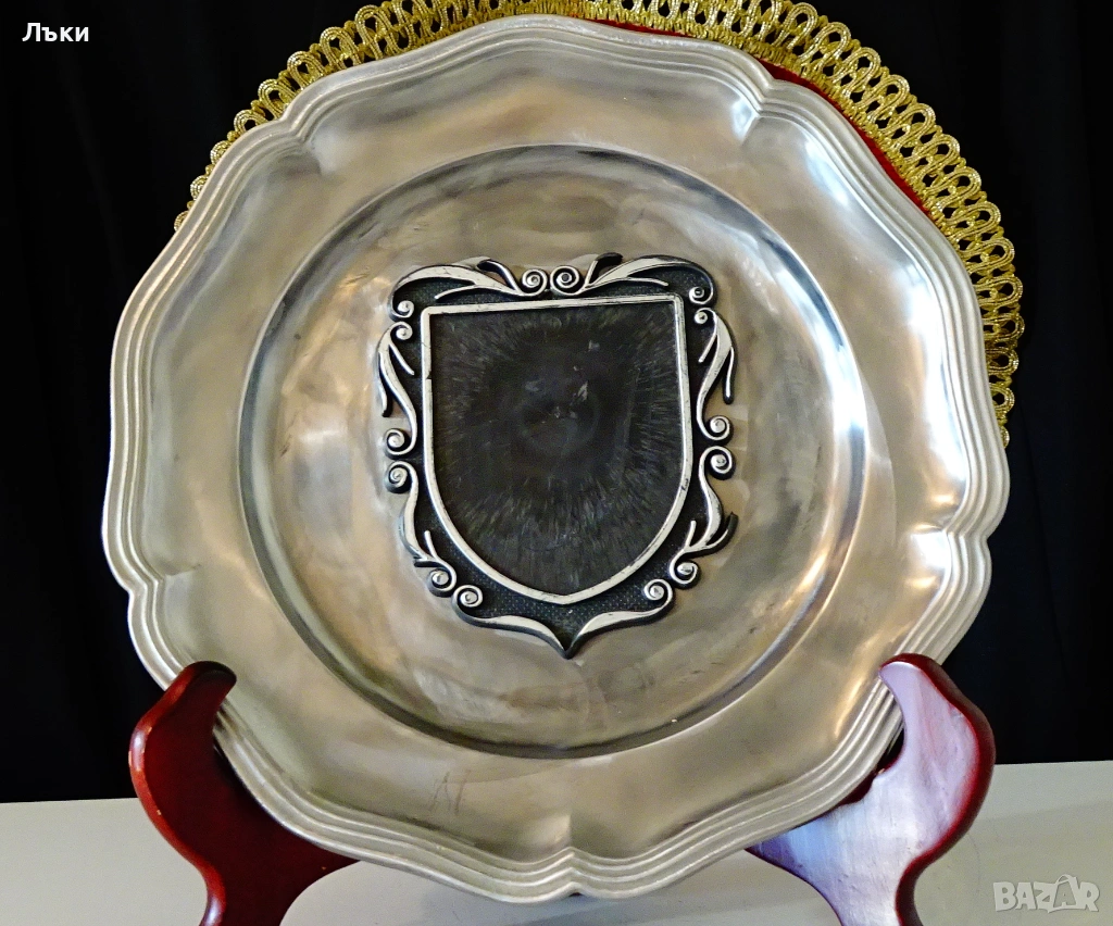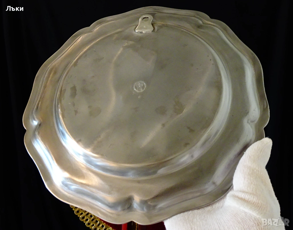 Стара немска калаена чиния за стена,калаено пано,ръчно
