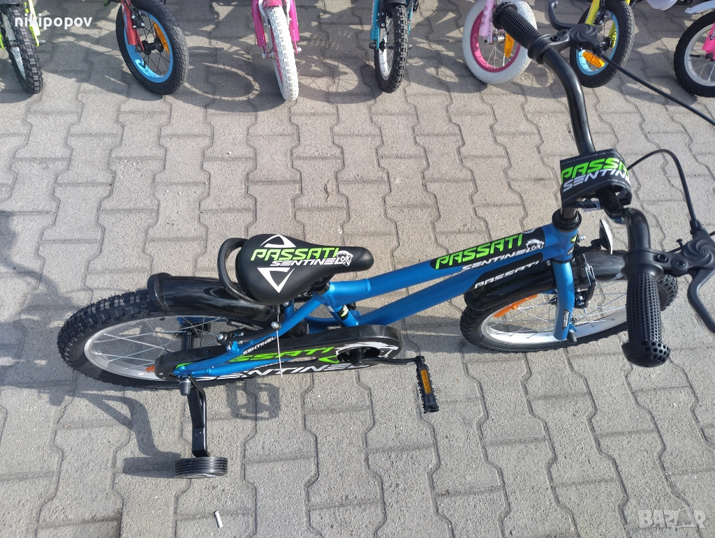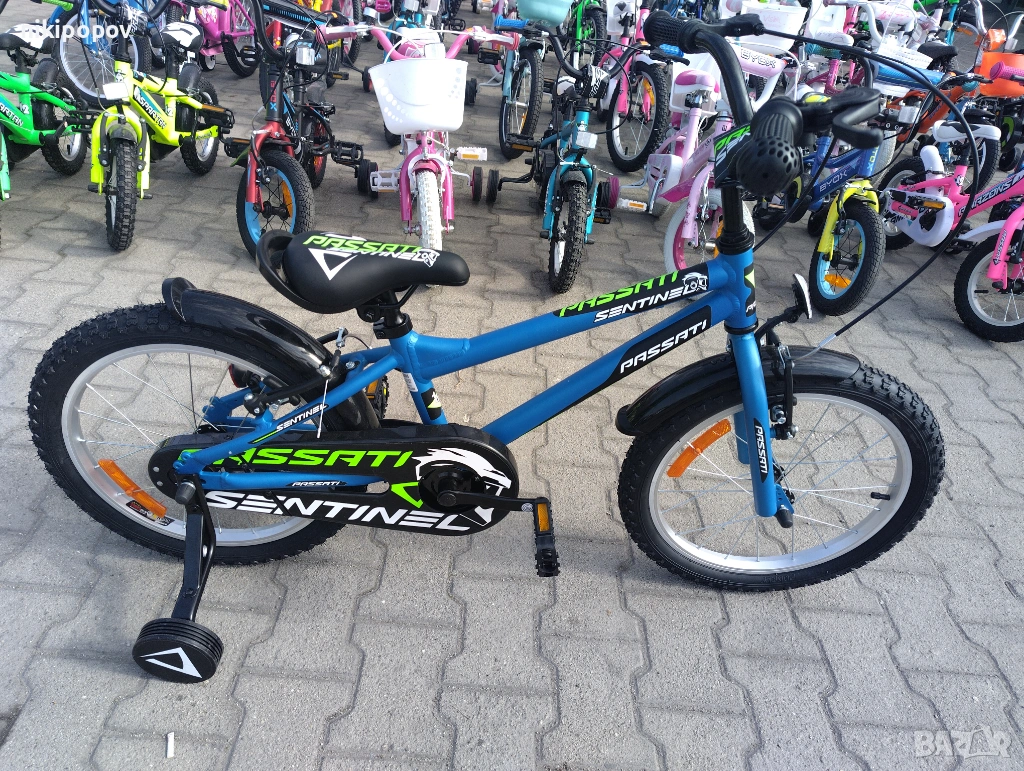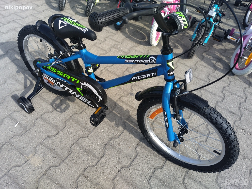*Детският велосипед на Passati Bikes е един прекрасен избор за децата между 5 и 7-годишна възраст и височина от 110 до 130см. Возилото е снабдено с помощни колела, посредством които детето ще усъвършенства умението си да балансира на две гуми неусетно. Рамката е алуминиева. Разполага с предна и задна V-brake спирачка, пластмасови калници и предпазител на веригата.