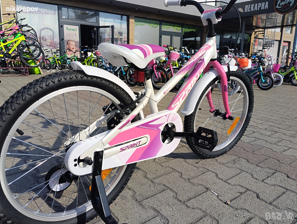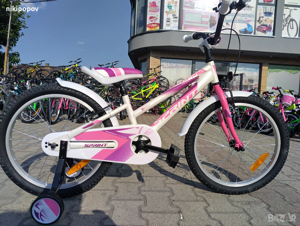 *Детският велосипед на Sprint Bikes е един прекрасен избор за децата между 6 и 8-годишна възраст и височина от 120 до 140см. Возилото е снабдено с помощни колела, посредством които детето ще усъвършенства умението си да балансира на две гуми неусетно. Рамката е стоманена. Разполага с предна и задна V-brake спирачка, пластмасови калници и предпазител на веригата.