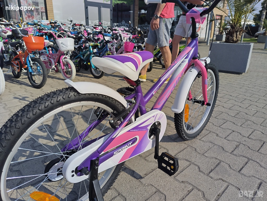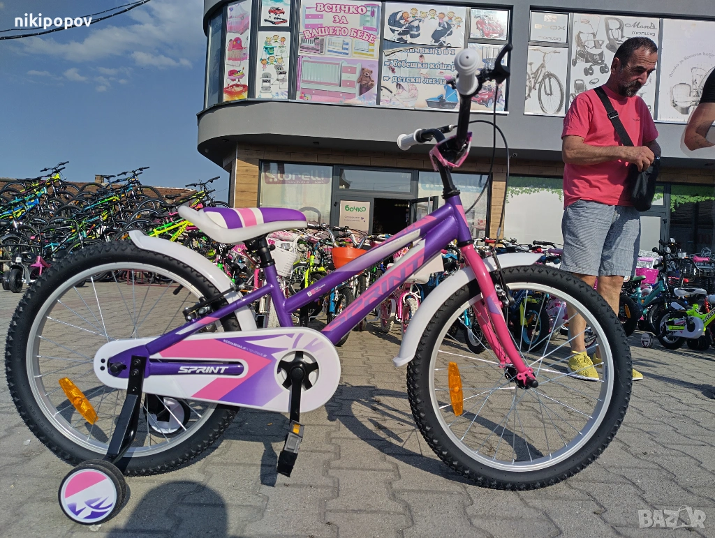 *Детският велосипед на Sprint Bikes е един прекрасен избор за децата между 6 и 8-годишна възраст и височина от 120 до 140см. Возилото е снабдено с помощни колела, посредством които детето ще усъвършенства умението си да балансира на две гуми неусетно. Рамката е стоманена. Разполага с предна и задна V-brake спирачка, пластмасови калници и предпазител на веригата.