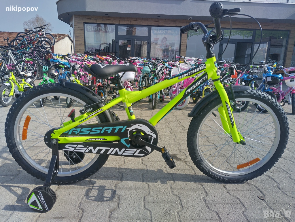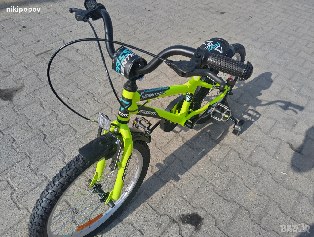 *Детският велосипед на Passati Bikes е един прекрасен избор за децата между 6 и 8-годишна възраст и височина от 120 до 140см. Возилото е снабдено с помощни колела, посредством които детето ще усъвършенства умението си да балансира на две гуми неусетно. Рамката е стоманена. Разполага с предна и задна V-brake спирачка, пластмасови калници и предпазител на веригата.