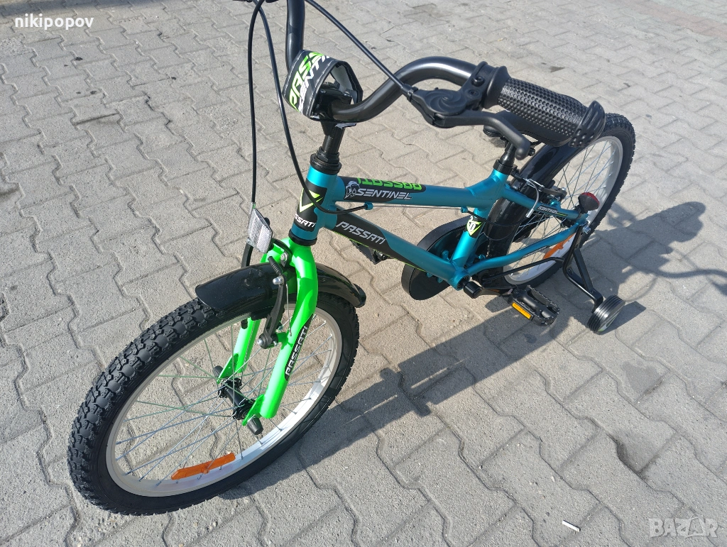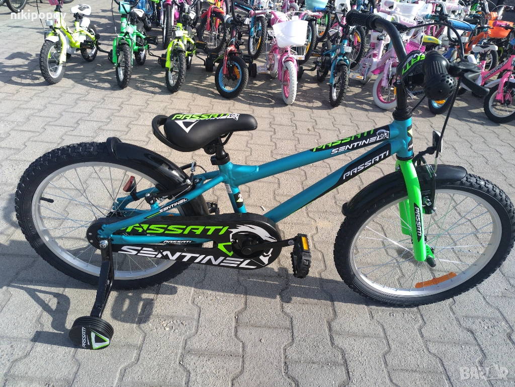 *Детският велосипед на Passati Bikes е един прекрасен избор за децата между 6 и 8-годишна възраст и височина от 120 до 140см. Возилото е снабдено с помощни колела, посредством които детето ще усъвършенства умението си да балансира на две гуми неусетно. Рамката е стоманена. Разполага с предна и задна V-brake спирачка, пластмасови калници и предпазител на веригата.