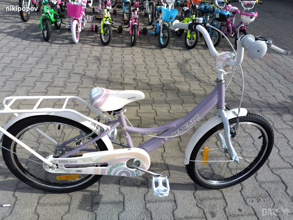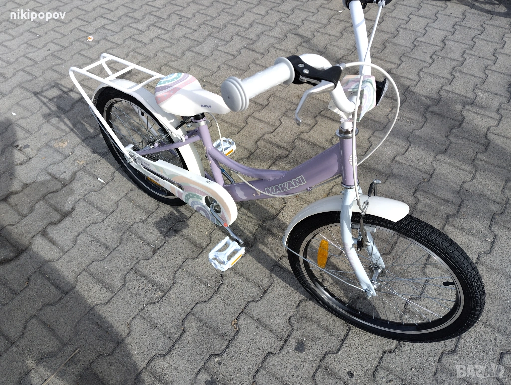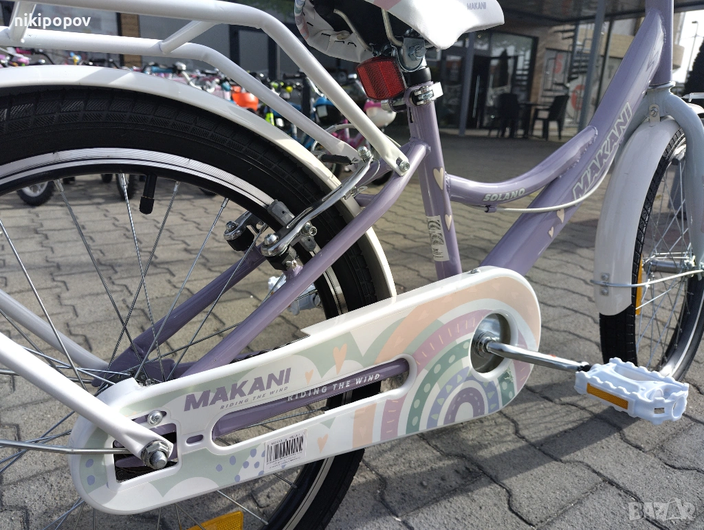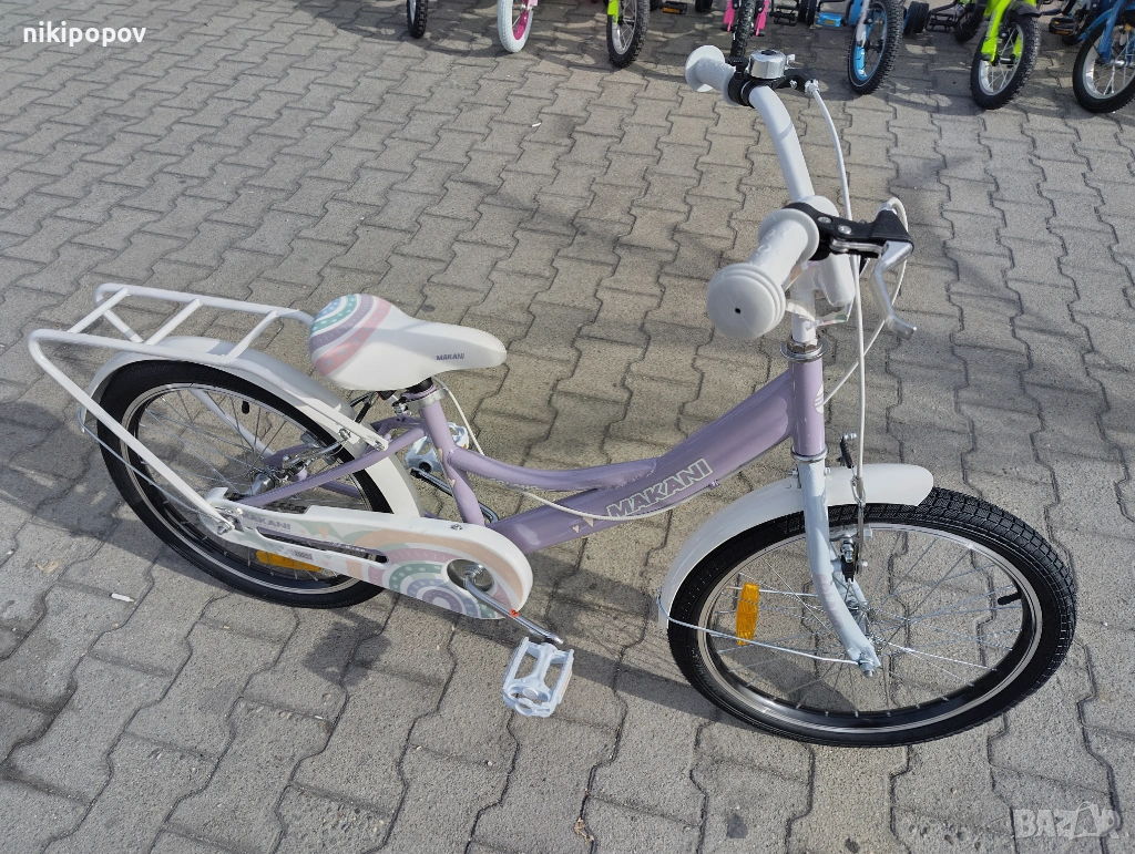 *Детският велосипед на Makani Bikes е един прекрасен избор за децата между 6 и 8-годишна възраст и височина от 120 до 140см. Возилото е снабдено с помощни колела, посредством които детето ще усъвършенства умението си да балансира на две гуми неусетно. Рамката е стоманена. Разполага с предна и задна V-brake спирачка, пластмасови калници и предпазител на веригата.