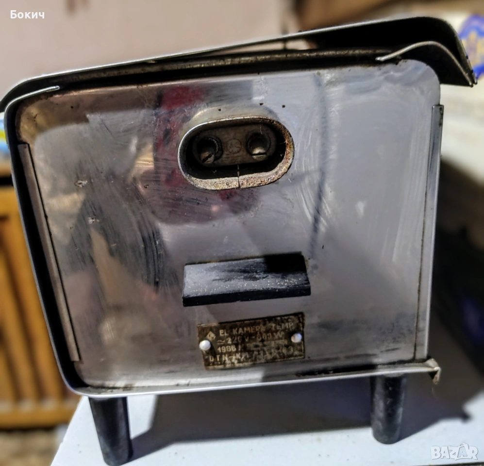 Използвана, запазена, работеща, ретро електрическа скара-принцесник, произведена през 1969 в България. Корпус от неръждаема стомана, мощност 1500 W, без таймер и без регулатори на температурата и мощността.
