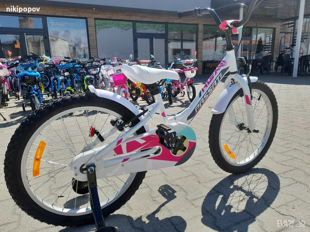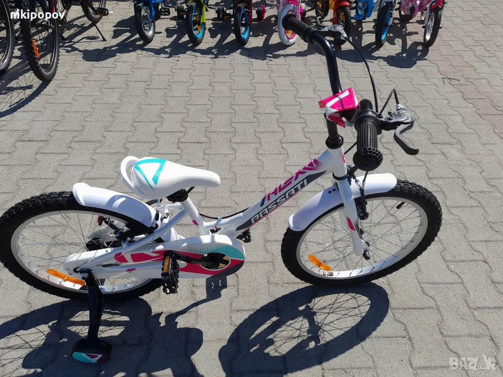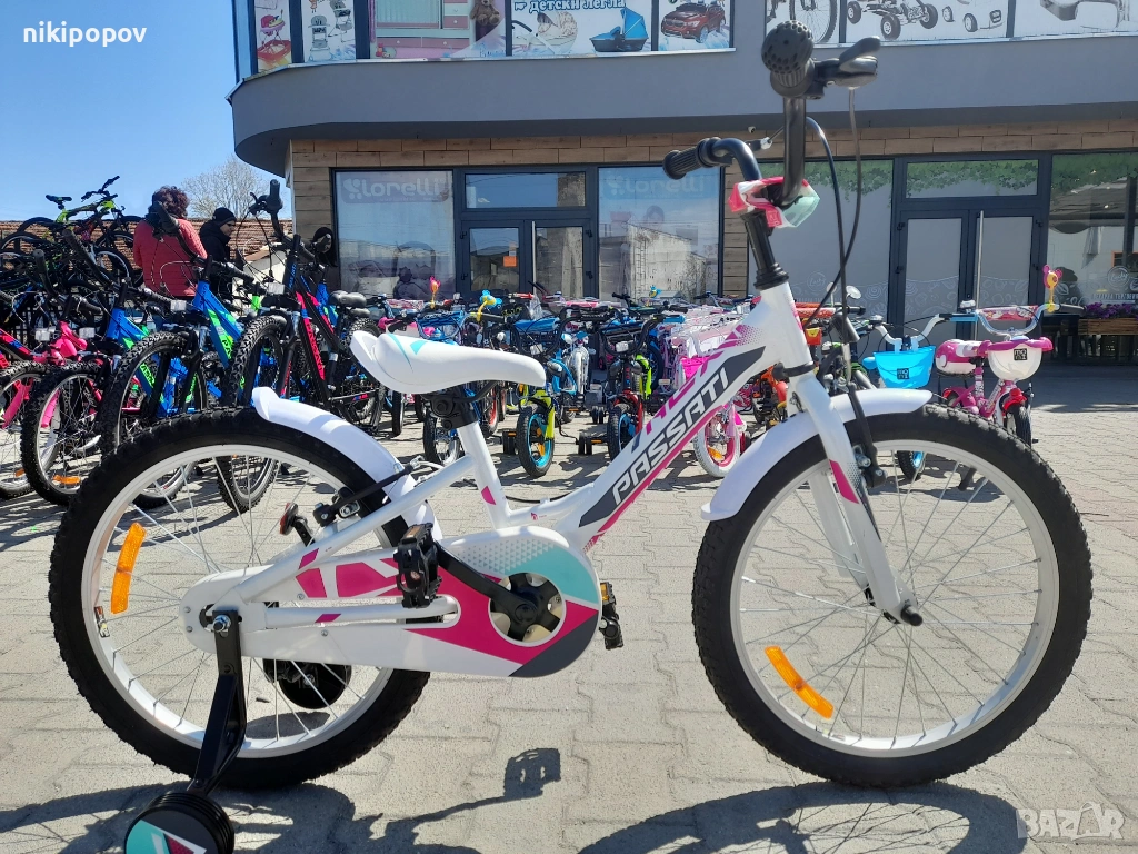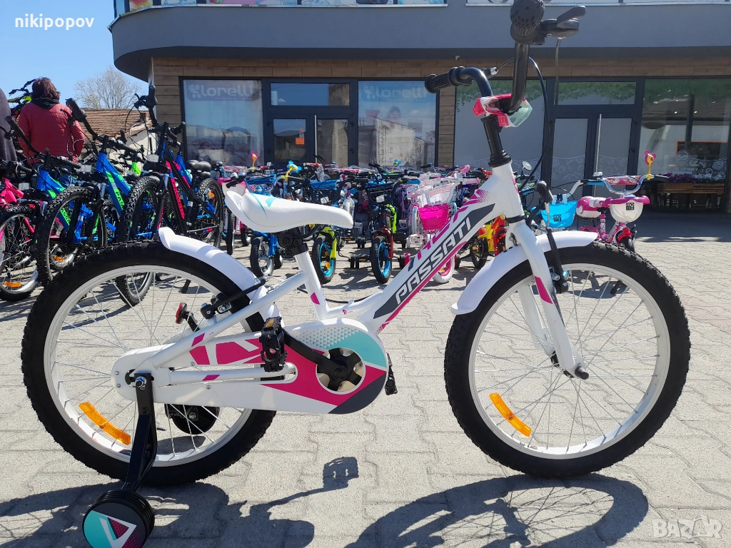 *Детският велосипед на Passati Bikes е един прекрасен избор за децата между 6 и 8-годишна възраст и височина от 120 до 140см. Возилото е снабдено с помощни колела, посредством които детето ще усъвършенства умението си да балансира на две гуми неусетно. Рамката е стоманена. Разполага с предна и задна V-brake спирачка, пластмасови калници и предпазител на веригата.