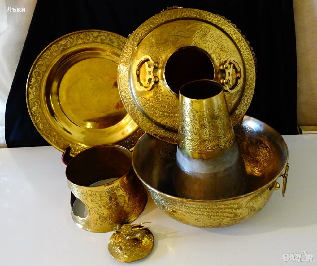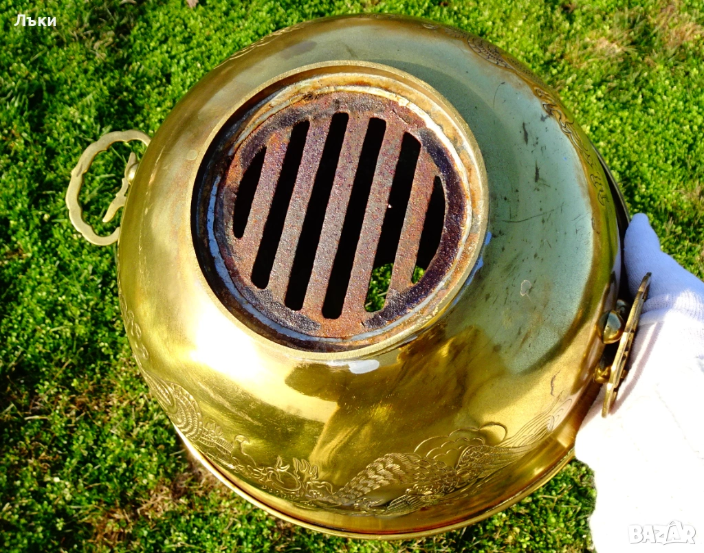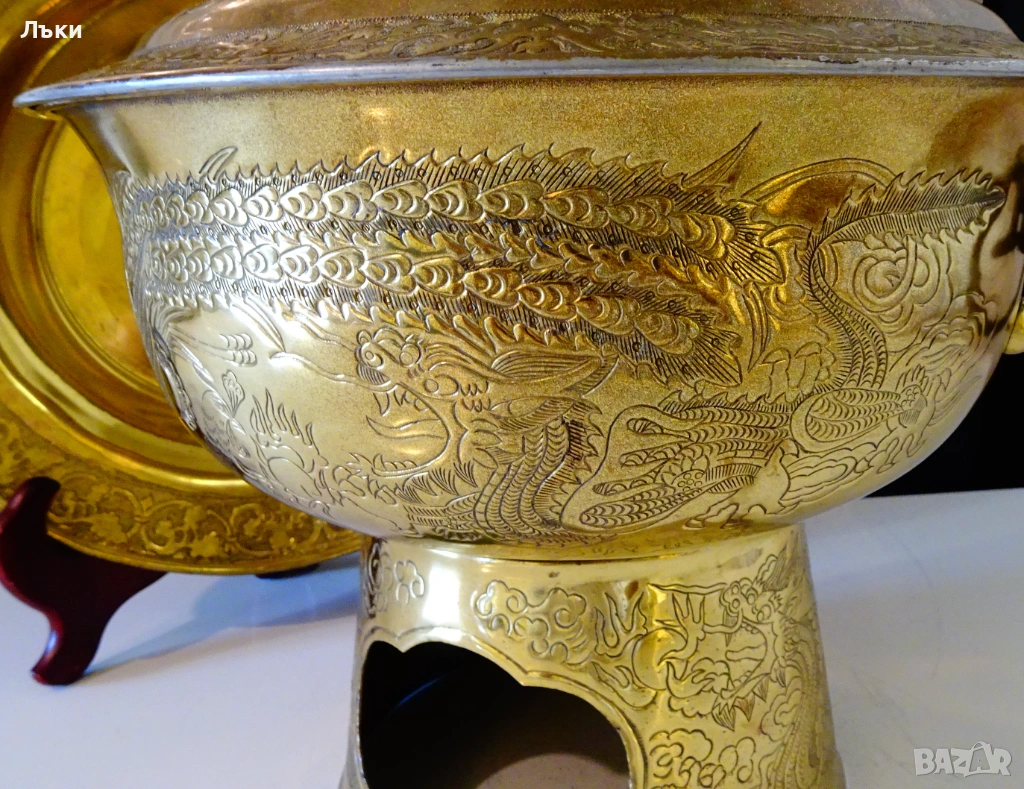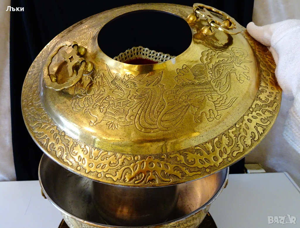 Стара китайска позлатена бронзова тенджера за готвене на