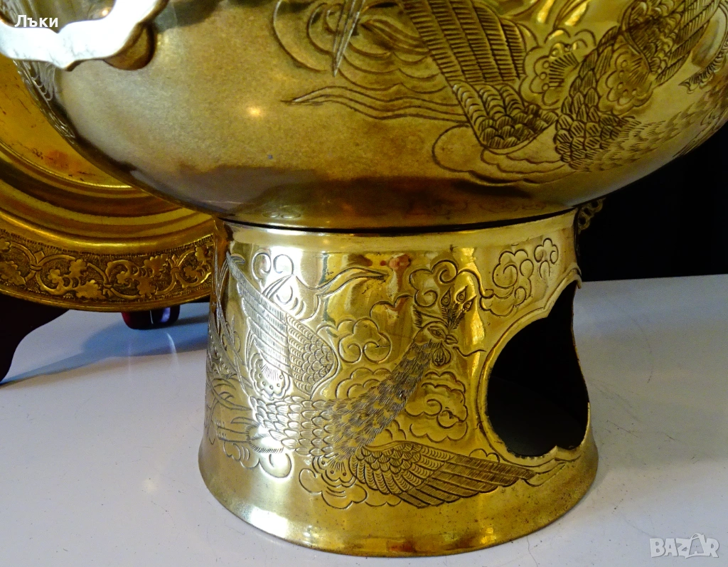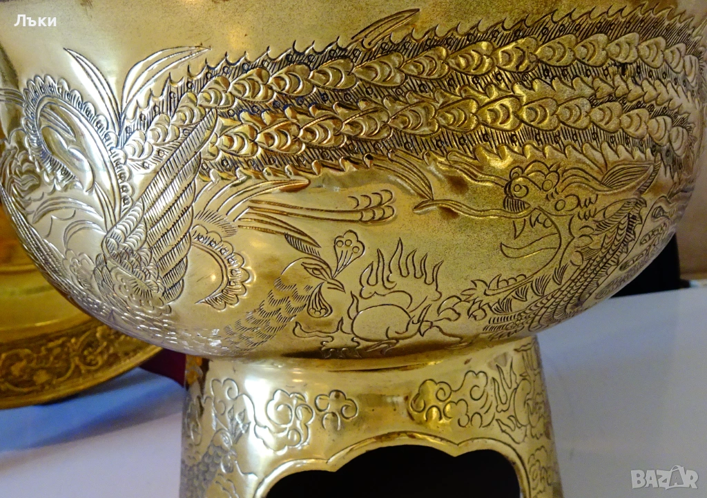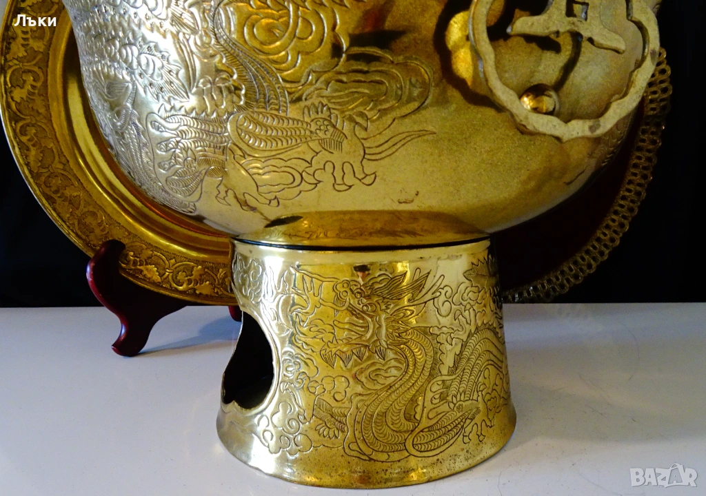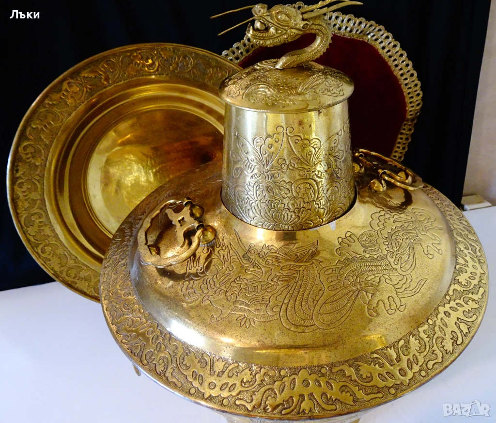 бронз.Декориран с релефно ковано изображение на китайски дракон с нефритено
