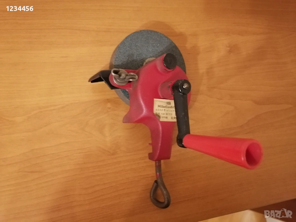 Шмиргел / шлайфмашина с диск, със здрав метален корпус и регулируема подложка за работния инструмент, нов, немски.