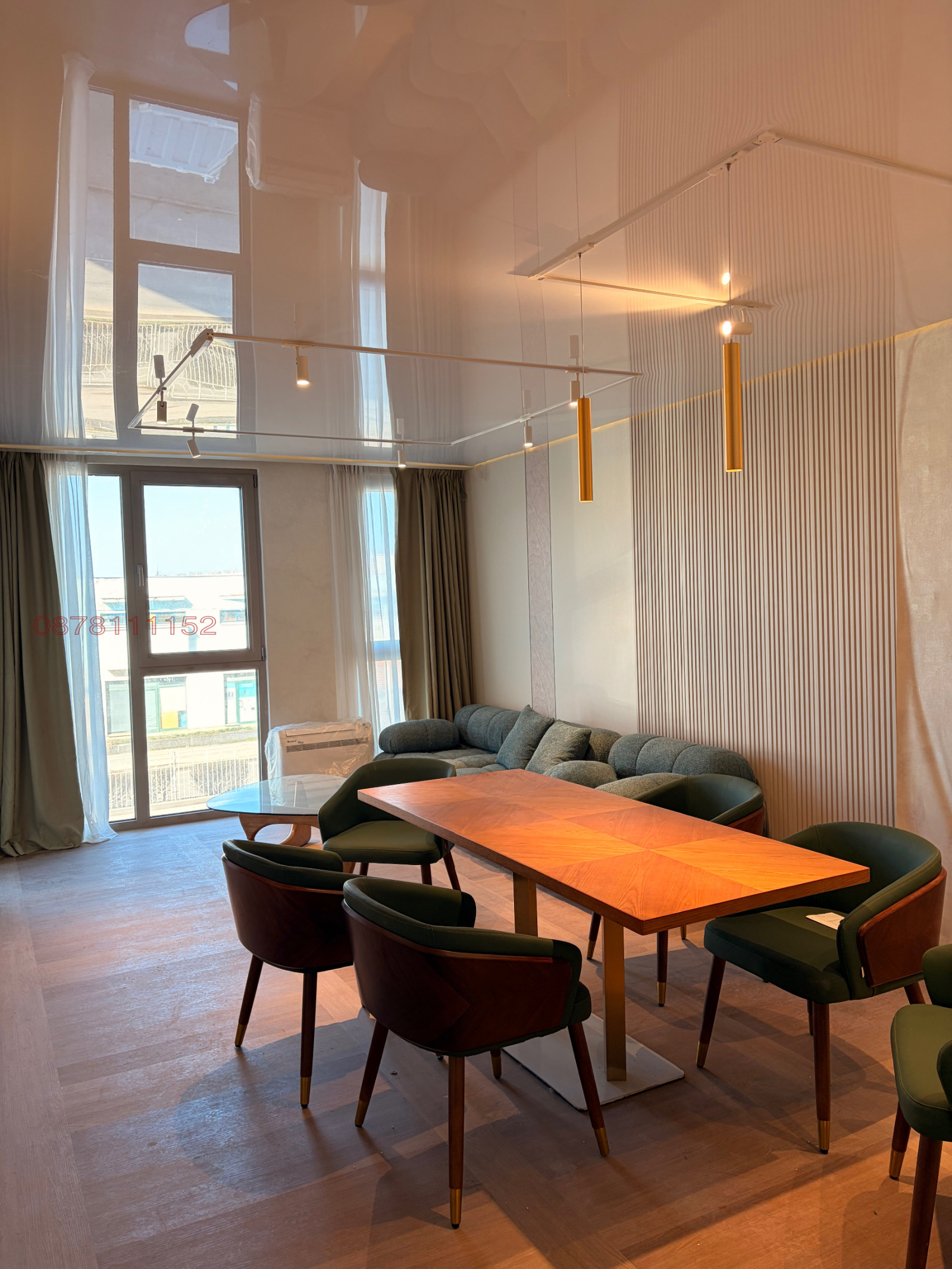 5. Поставени осветителни тела: Осветлението е решено с магнитни шини с LED осветителни тела, които позволяват създаването на неограничен брой осветителни сцени. Опционално могат да бъдат поставени електрически SMART завеси.
