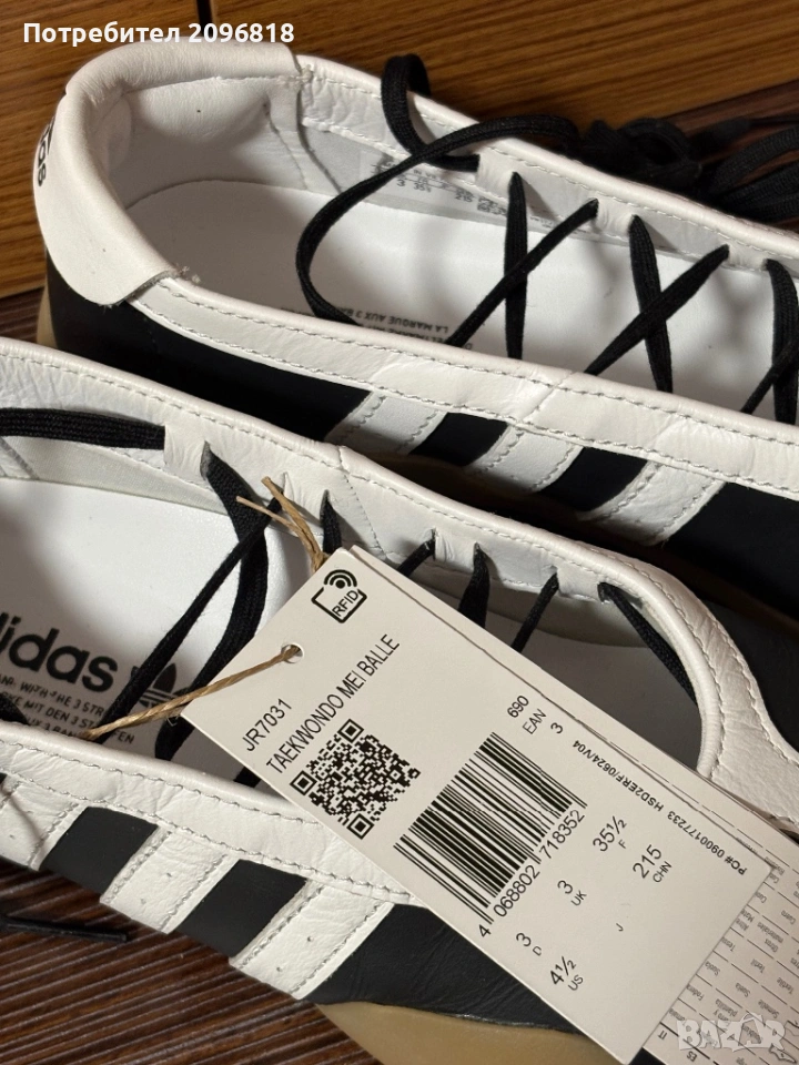Продавам дамски обувки балеринки Adidas Taekwondo Mei в черен цвят. Обувките са чисто нови, с етикет. Имат три вида вързанки: черни, бели, бели сатенени. Размер: 35.5