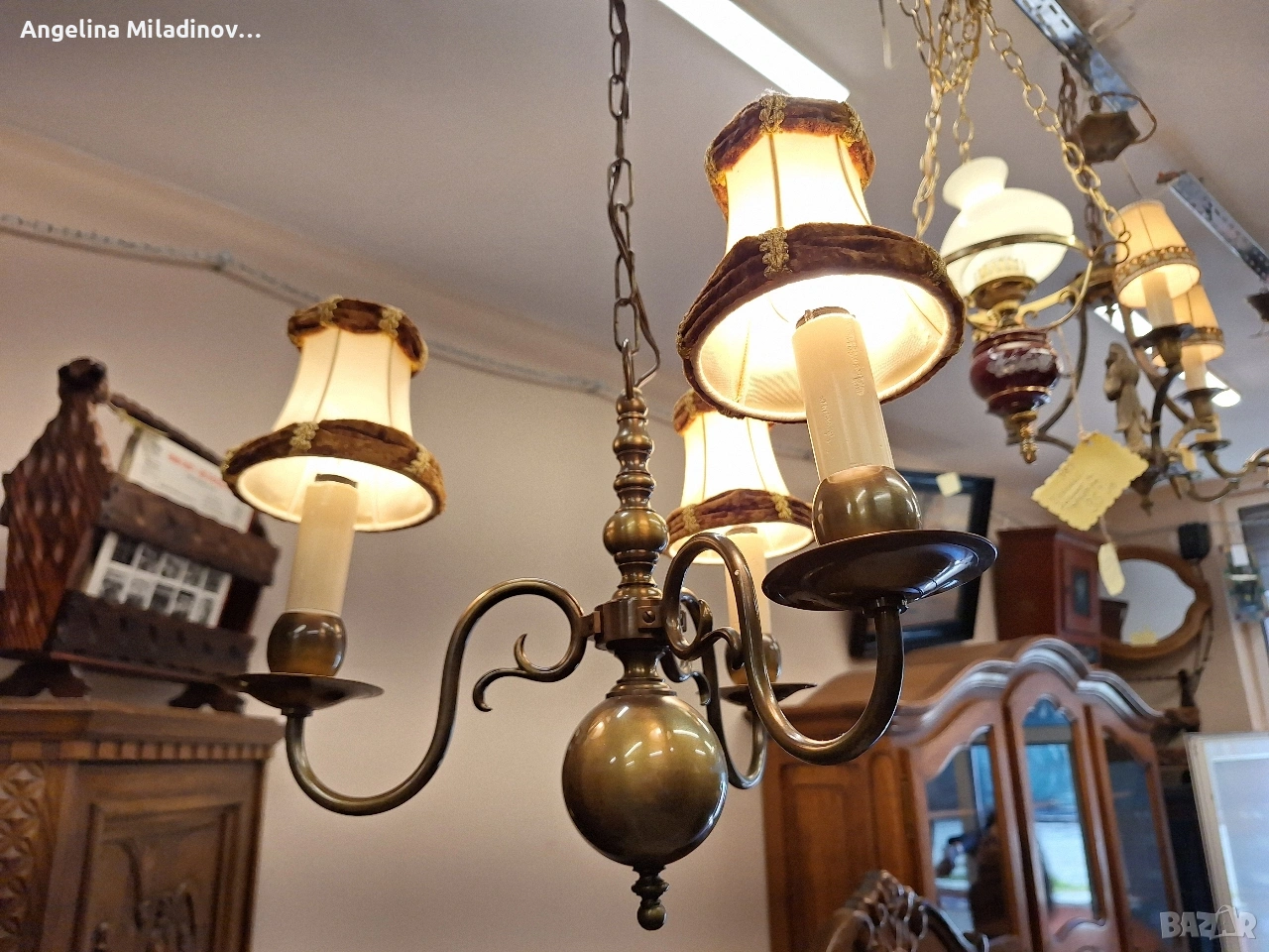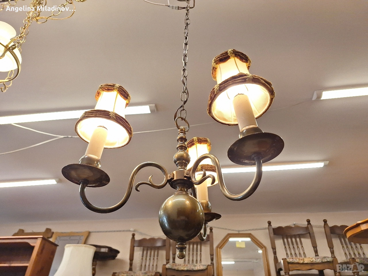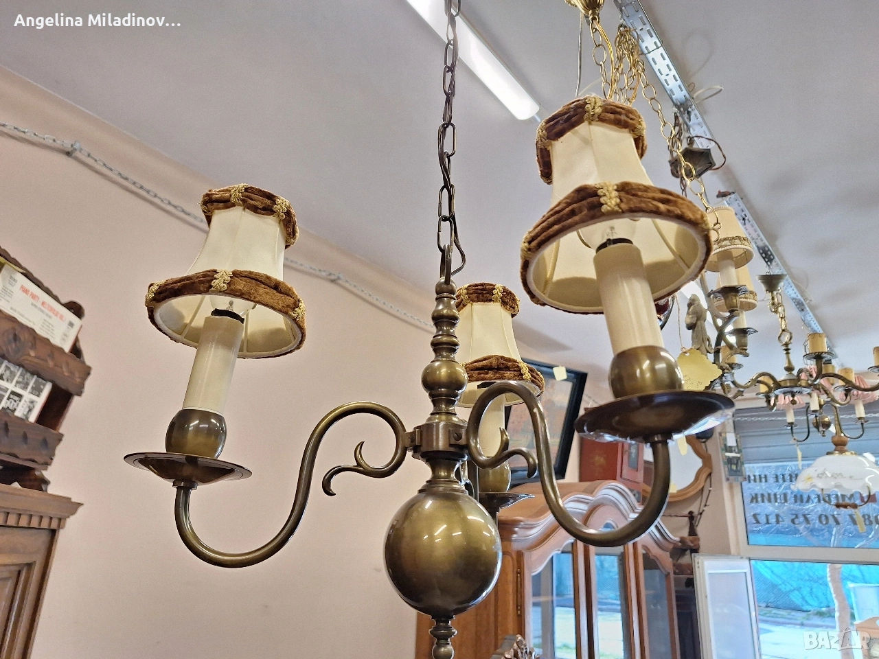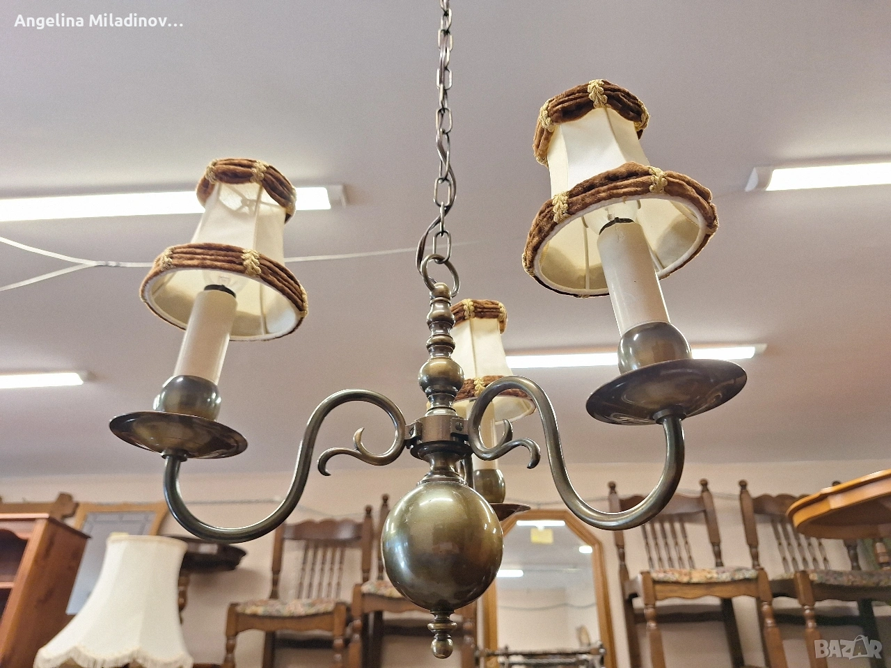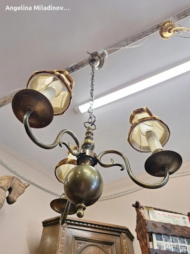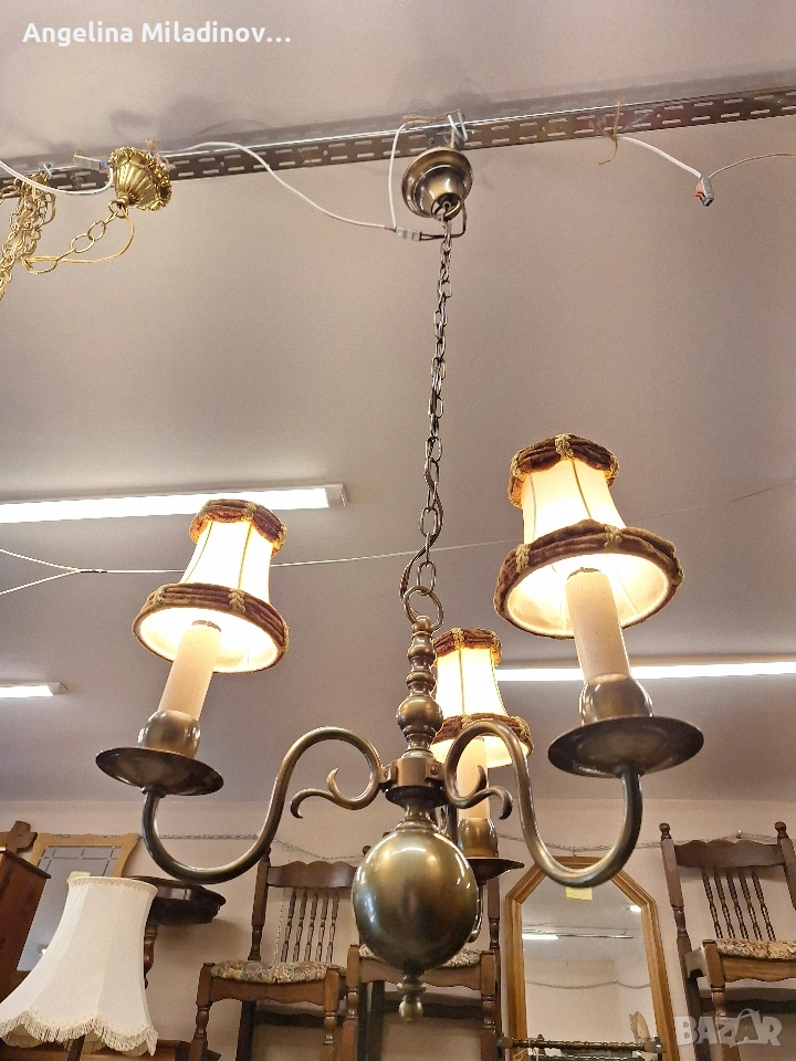 Винтидж полилей месинг. Винтидж полилей, внос от Дания. Красив, масивен полилей от месинг с красиви елементи. Полилея е с 3 крушки подходящ за вашата всекидневна, трапезария или спалня. Разгледайте и другите ми обяви. Последвайте ни и във фейсбук Мебели шик. Размери: Диаметър - 40 см. Височина - 100 см. Цена - 82 € 160,38 лв. vintagemebel.olx.bg