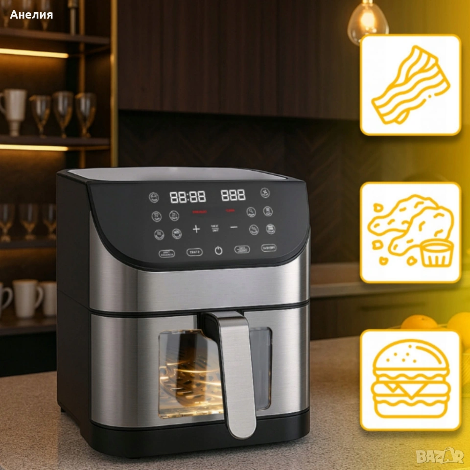 Фритюрник с горещ въздух XXL - 8 литра, 1800 W и 12 програми