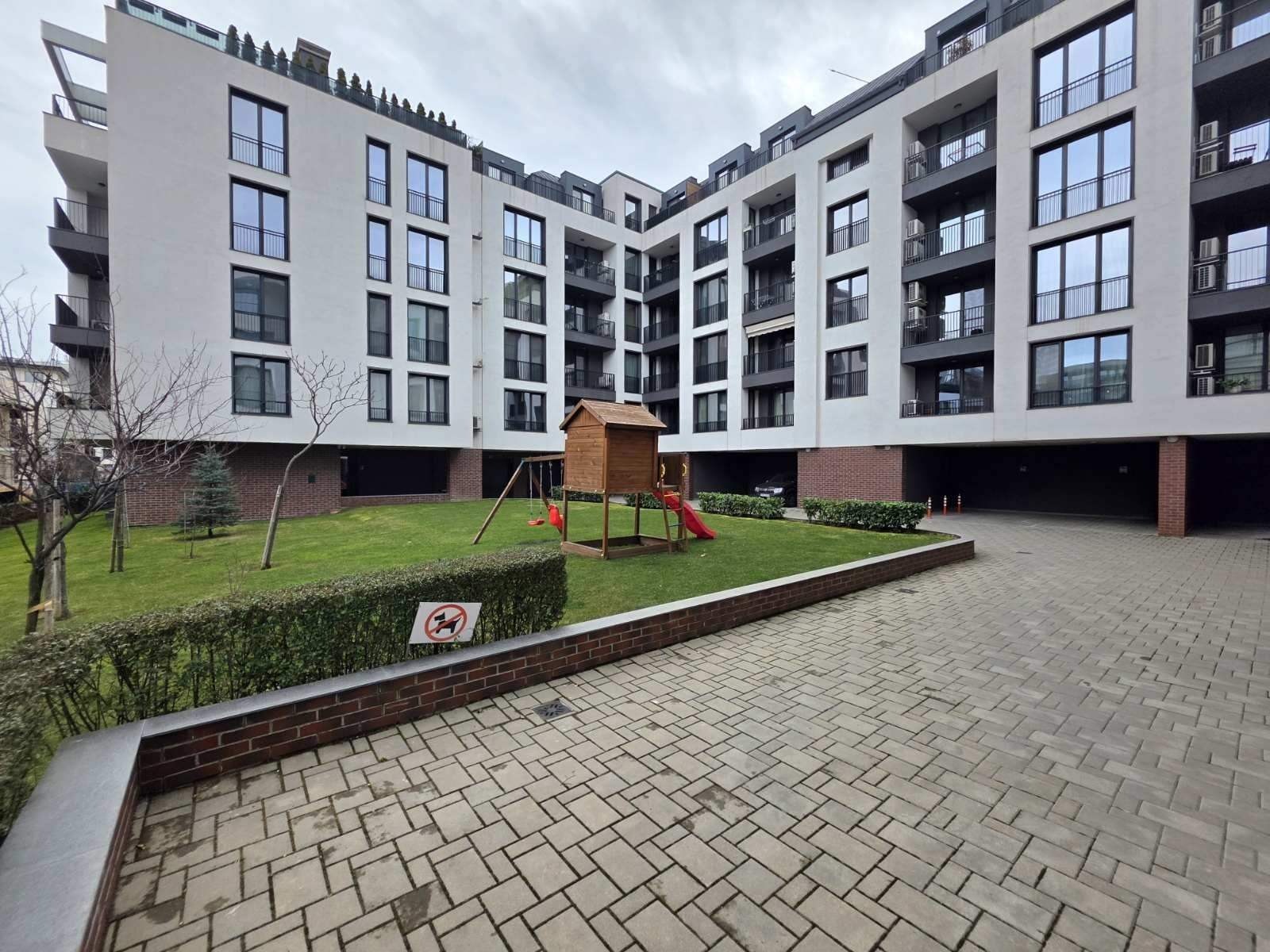 Нова луксозна сграда със собствен двор в отлично състояние.