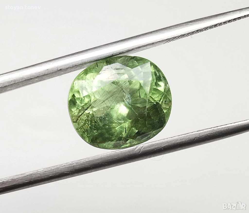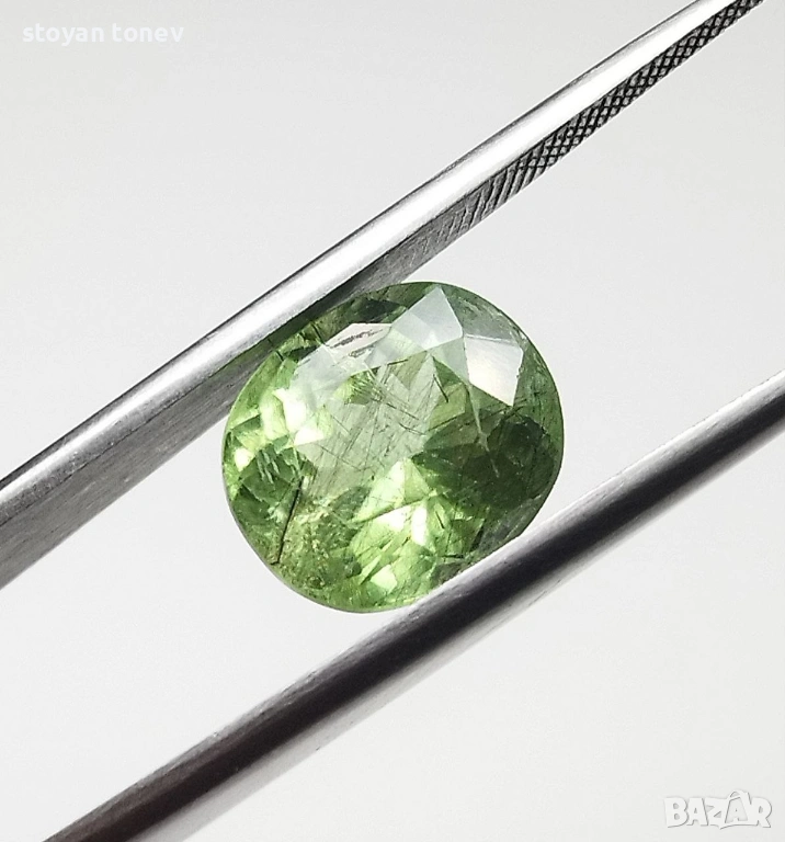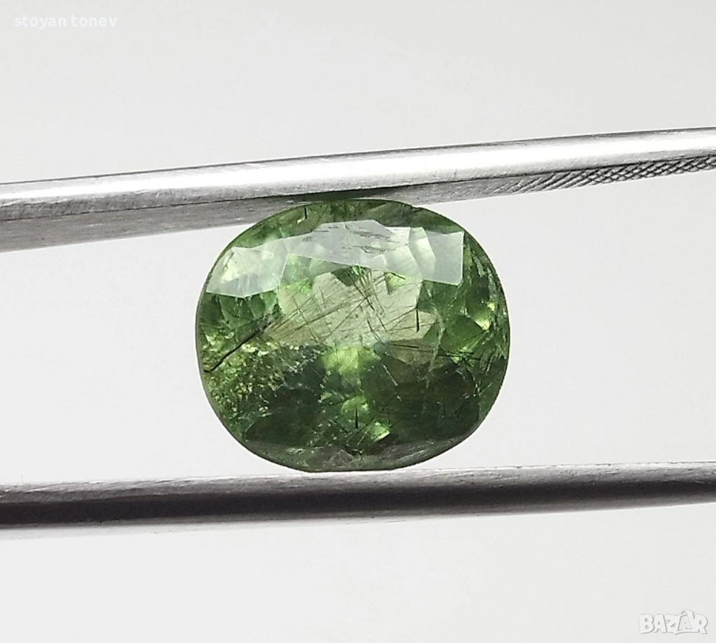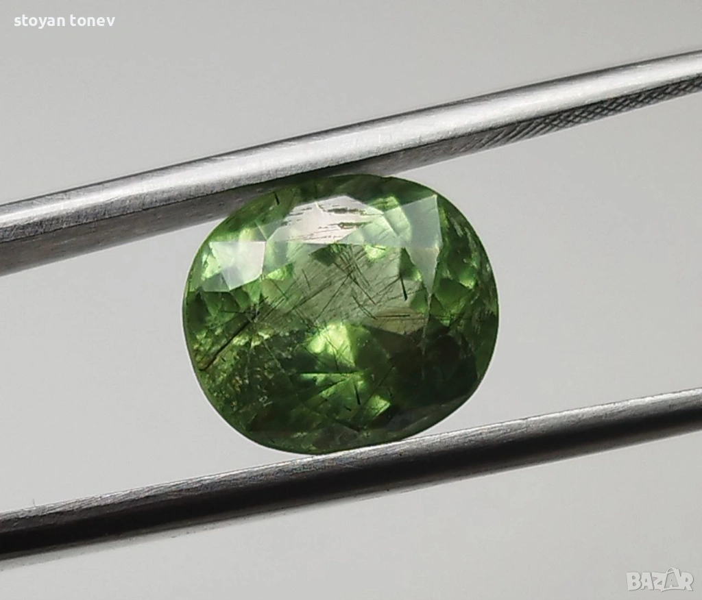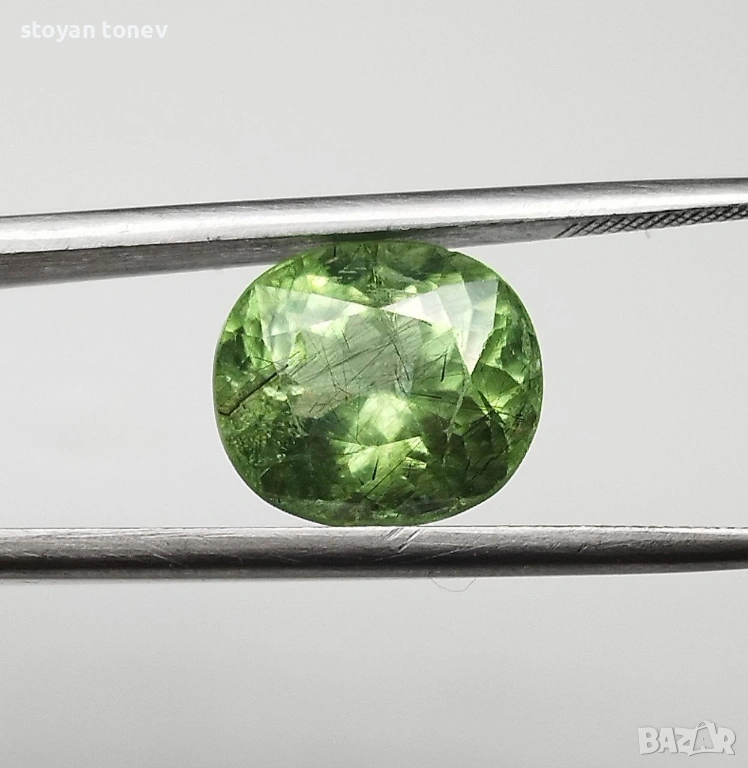 - Рутилният ефект + яркият apple green цвят + голям размер = комбинация, която се среща рядко дори сред Пакистанските перидоти