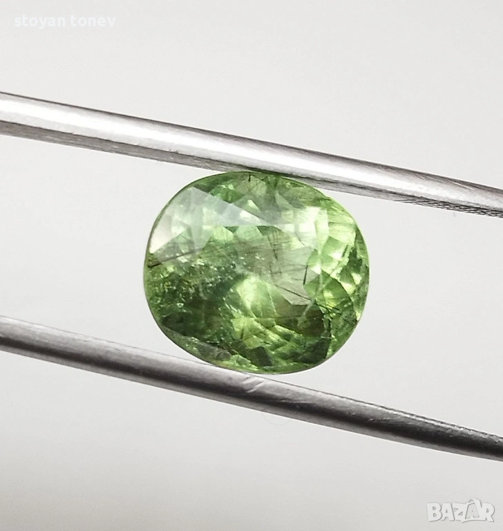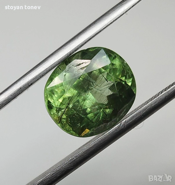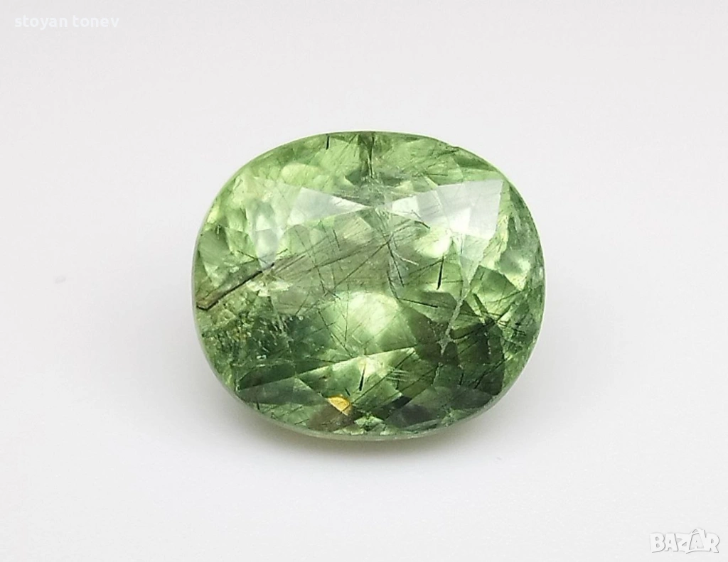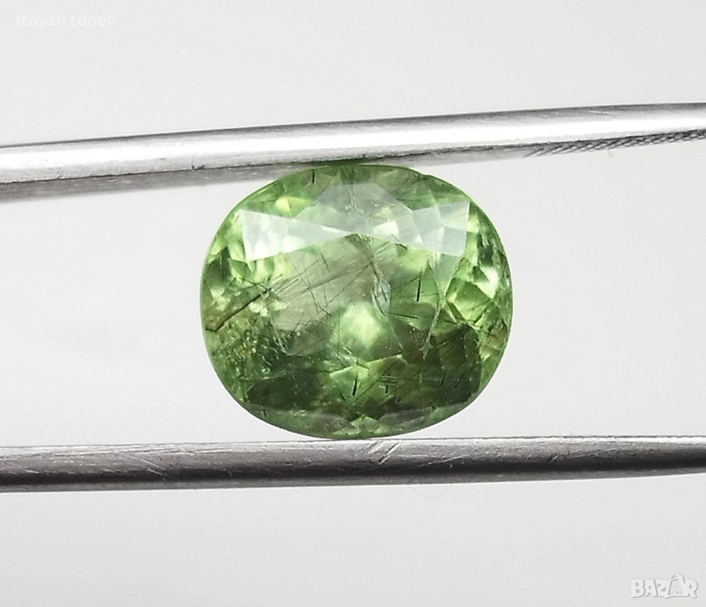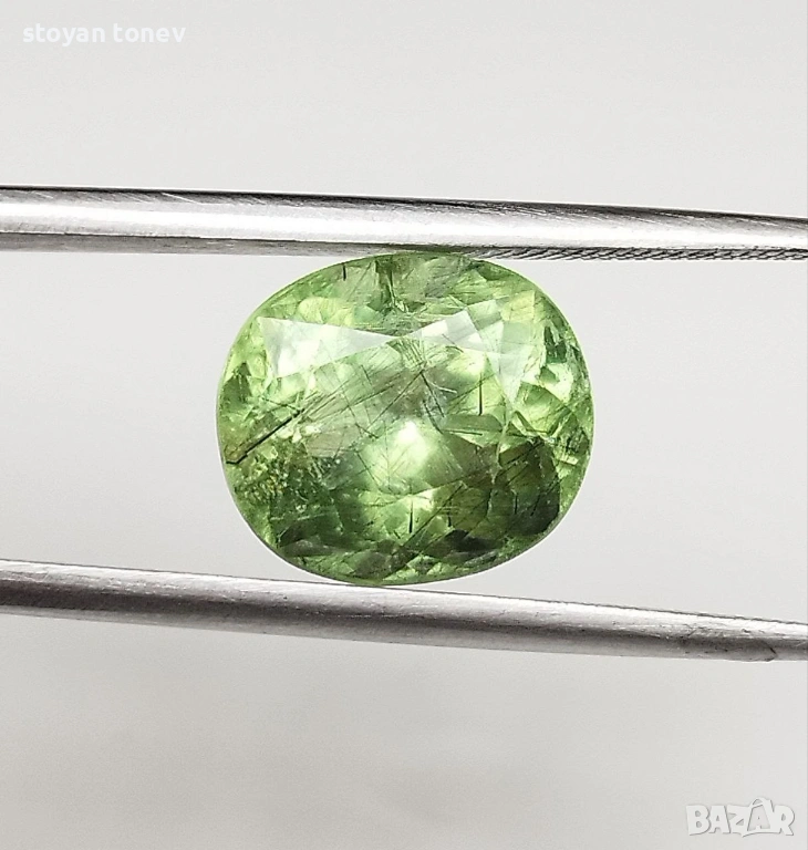 - Рутилният ефект + яркият apple green цвят + голям размер = комбинация, която се среща рядко дори сред Пакистанските перидоти