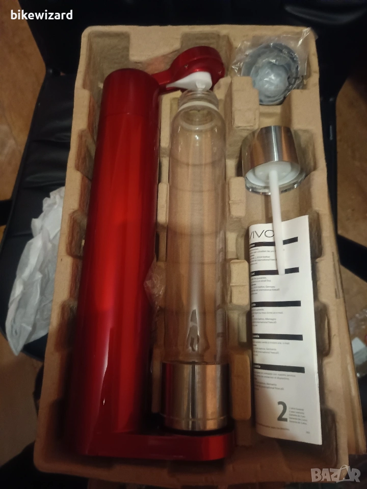 В допълнение към революционната машина за газирана вода, този комплект включва елегантна бутилка с технология за впръскване, която може да се пълни с газ, като просто се постави в машината, без да се завинтва.