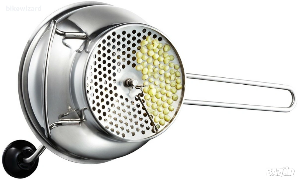 Това ренде с три сменяеми цедки и стъргалка се справя без усилие с плодове и зеленчуци. Може да се използва за приготвяне на картофено пюре, гъст доматен сос или пресни плодове за здравословна овесена каша. Ергономичната дръжка осигурява лесна и прецизна работа. Размери: дължина 40,6 см, ширина 21,8 см, височина 18,5 см.