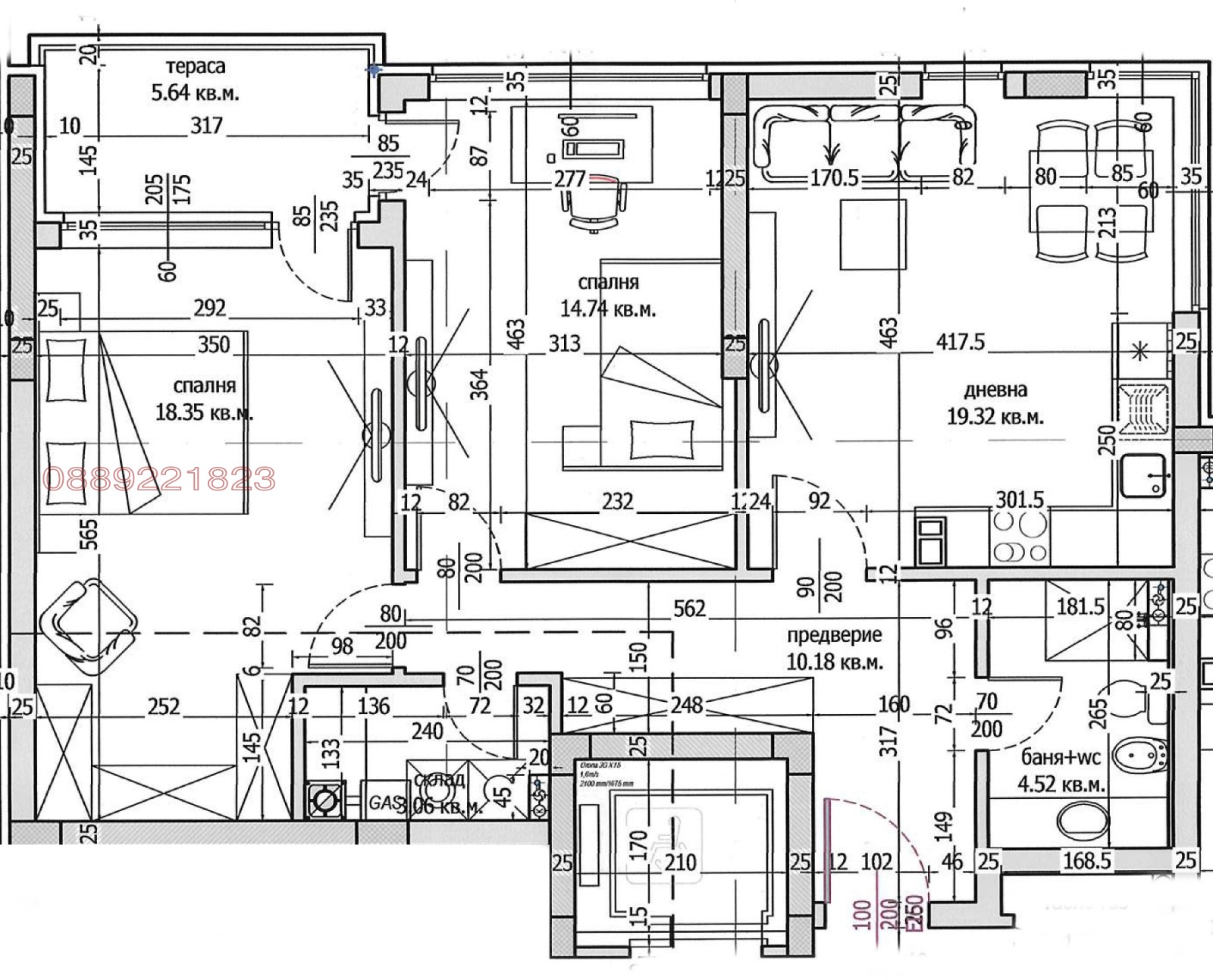 89 кв.м чиста площ