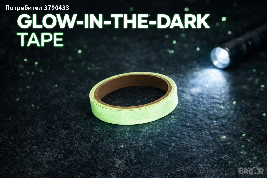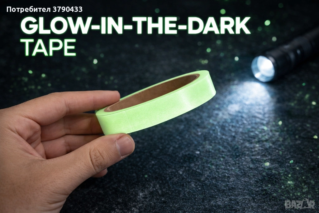 Светеща фосфоресцираща лента / тиксо (Glow in the dark), която свети в тъмното след като се зареди от светлина.