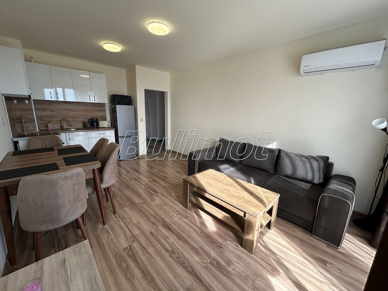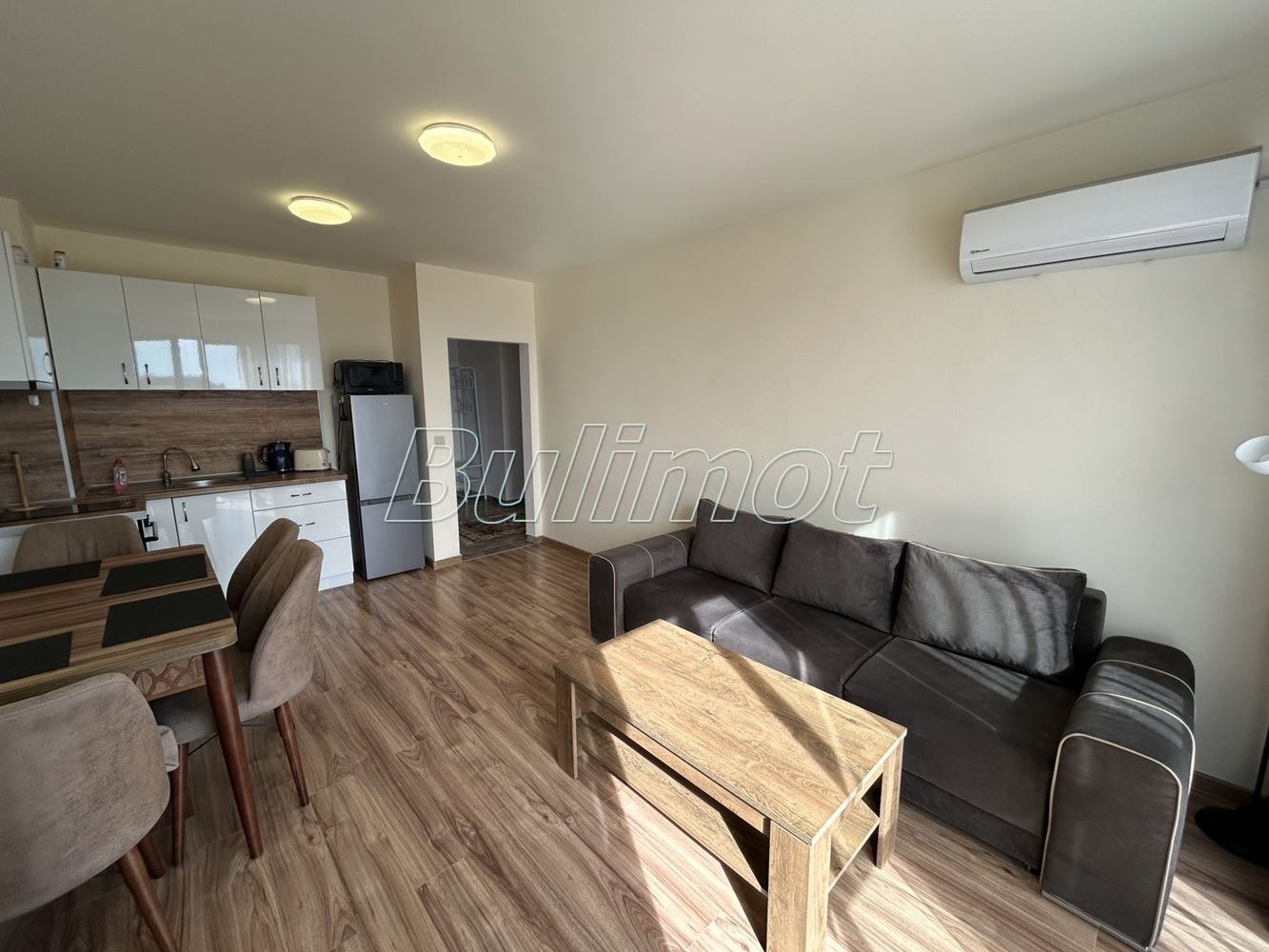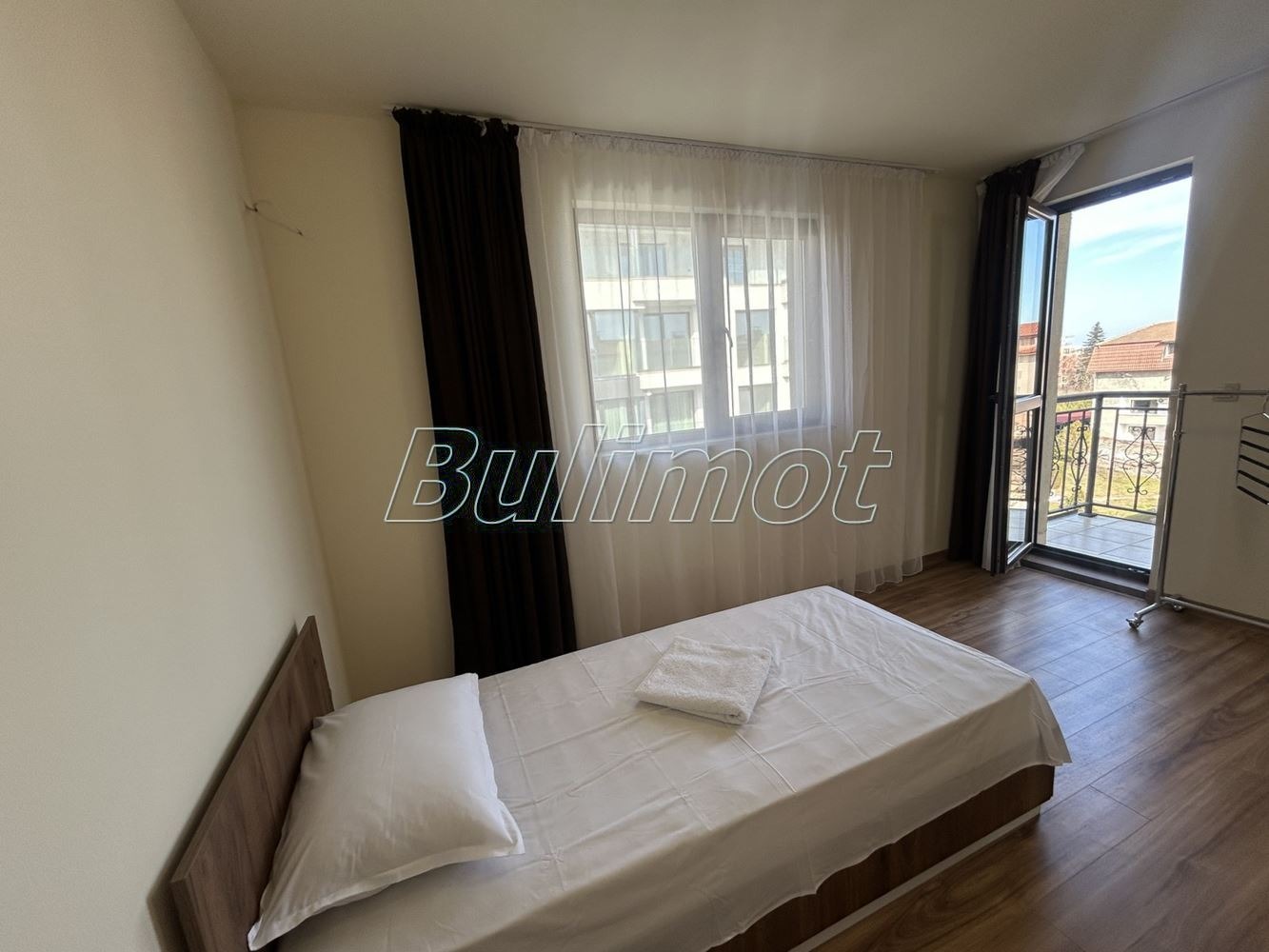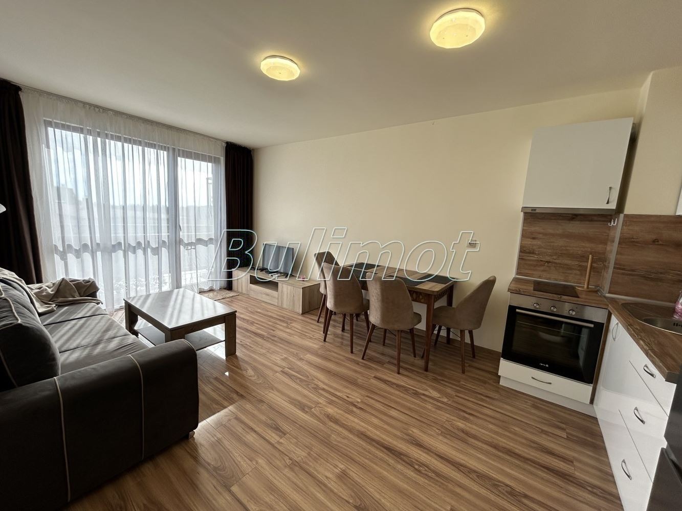 Бул Имот предлага тристаен апартамент в прекрасна сграда от затворен тип с контролиран достъп. Апартаментът се състои от коридор, дневен тракт с кухненска част с излаз на тераса, две спални с излаз на тераса, баня с тоалет. Жилището е напълно обзаведено и оборудвано. Предлага се с външно паркомясто в двора с контролиран достъп за допълнително заплащане.