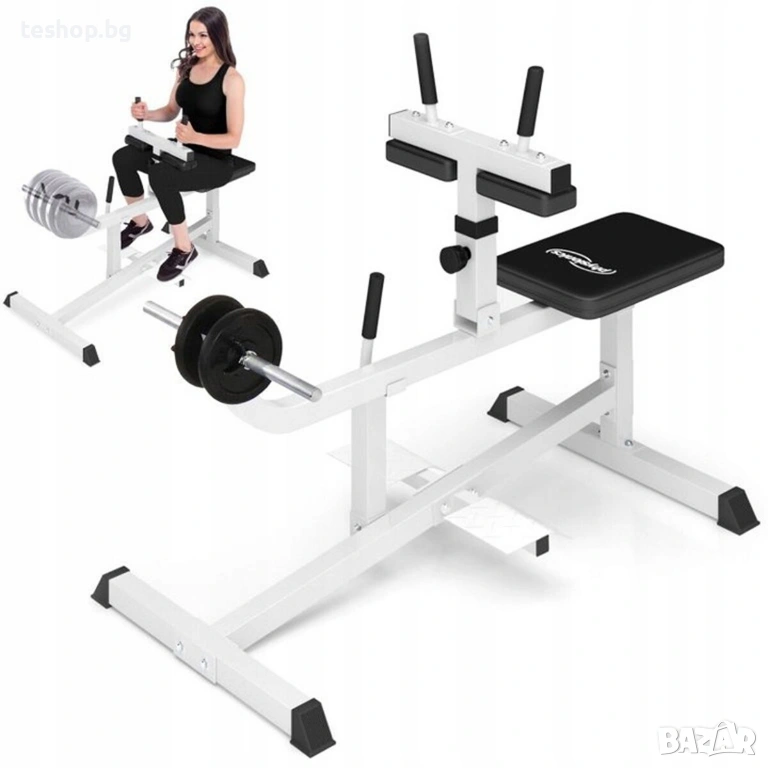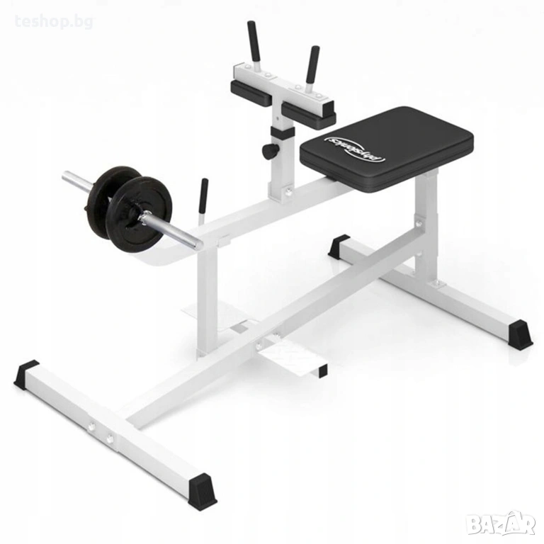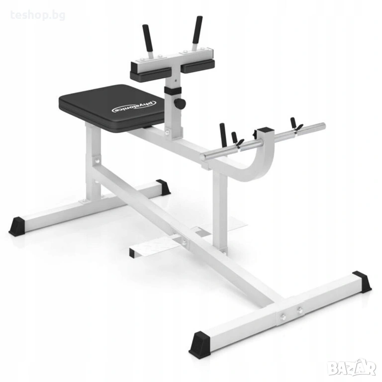 Тренажор за упражнения за крака и прасец Physionics Ако искате перфектна физика, не пренебрегвайте мускулите на прасците си. Тренажорът за прасци със седеж от немската марка PHYSIONICS® е перфектният инструмент за изграждане на мускулите на прасците и подобряване на цялостната естетика на тялото. Нашият тренажор за прасци е специално проектиран за тренировка на прасци. Подплатената пейка и двете наколенки осигуряват повишен комфорт по време на тренировка, а ергономично оформените дръжки гарантират сигурен захват. Този уред за силови тренировки е с товароносимост от приблизително 220 кг. Поставките за крака осигуряват повишена стабилност и безопасност.