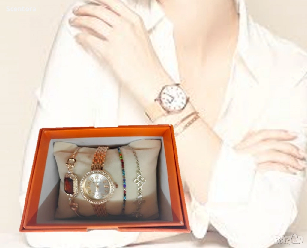 Луксозен дамски комплект часовник и гривни → Обява 53775966