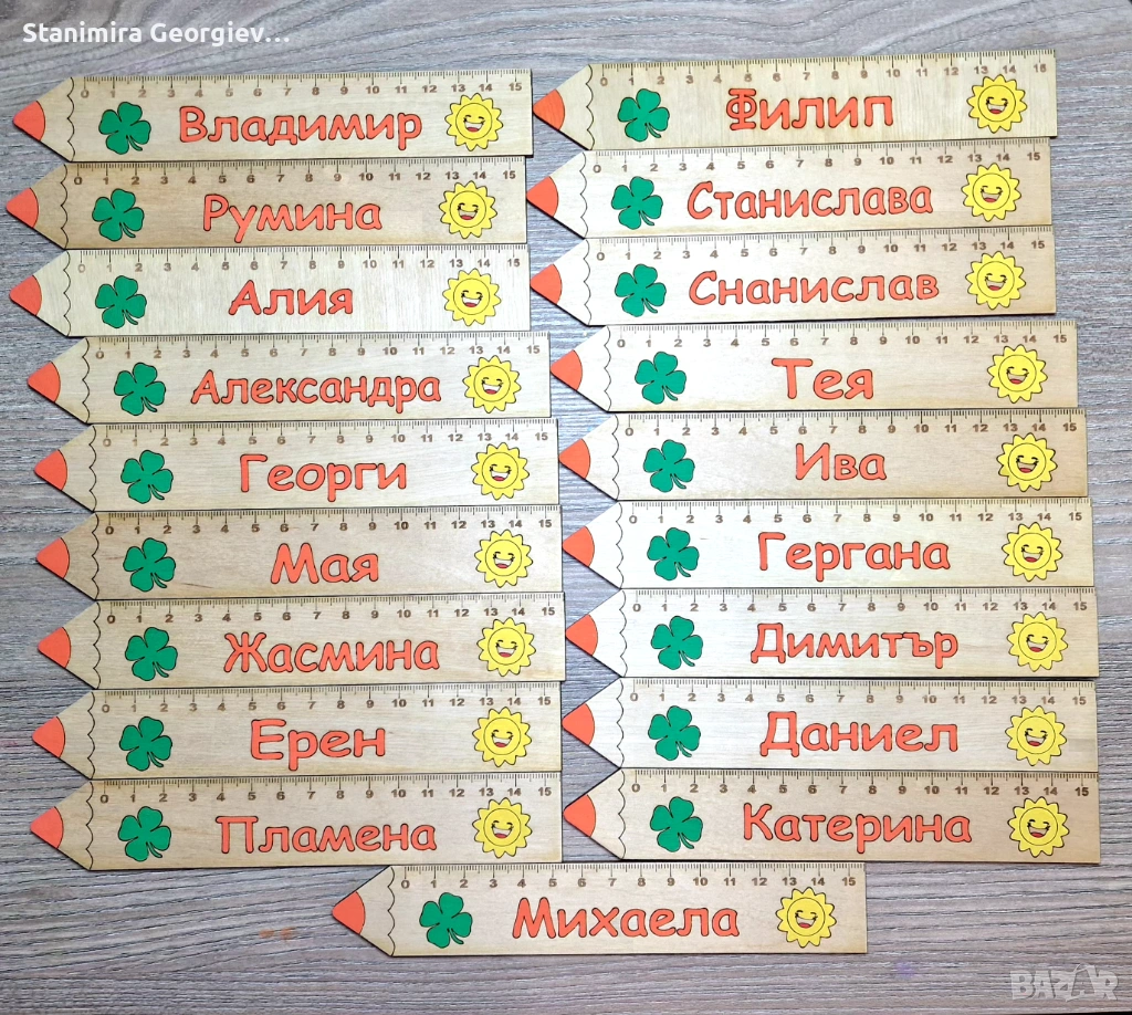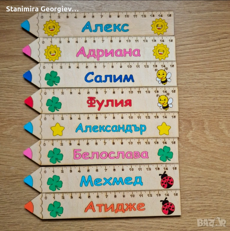 Линия с име и картинка 20см - 2.50 евро (4.88лв ) за брой.