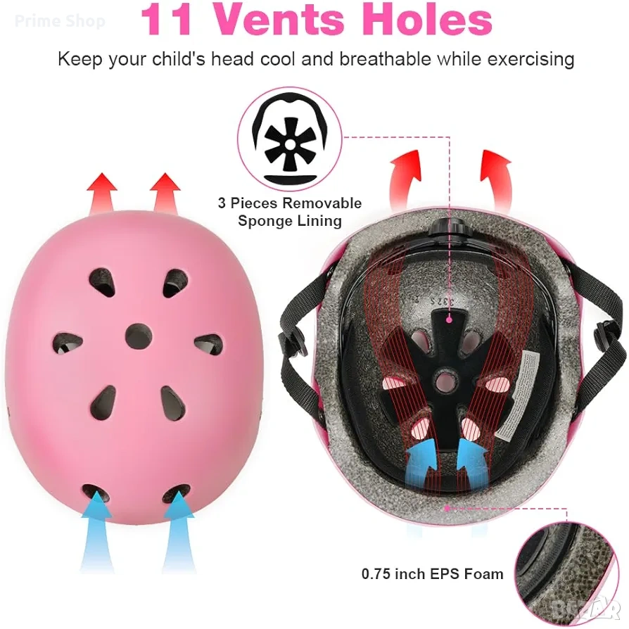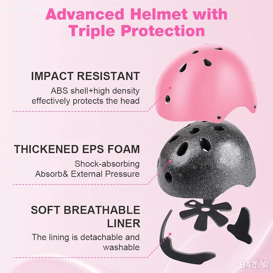 * Материали: ABS пластмаса, EPS пяна, PE полиетилен, текстил