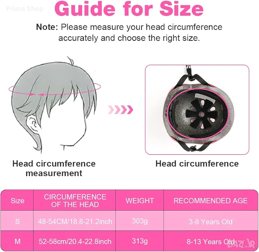 * Размер S: за обиколка на главата 48-54 см (препоръчителна възраст 3-8 години)